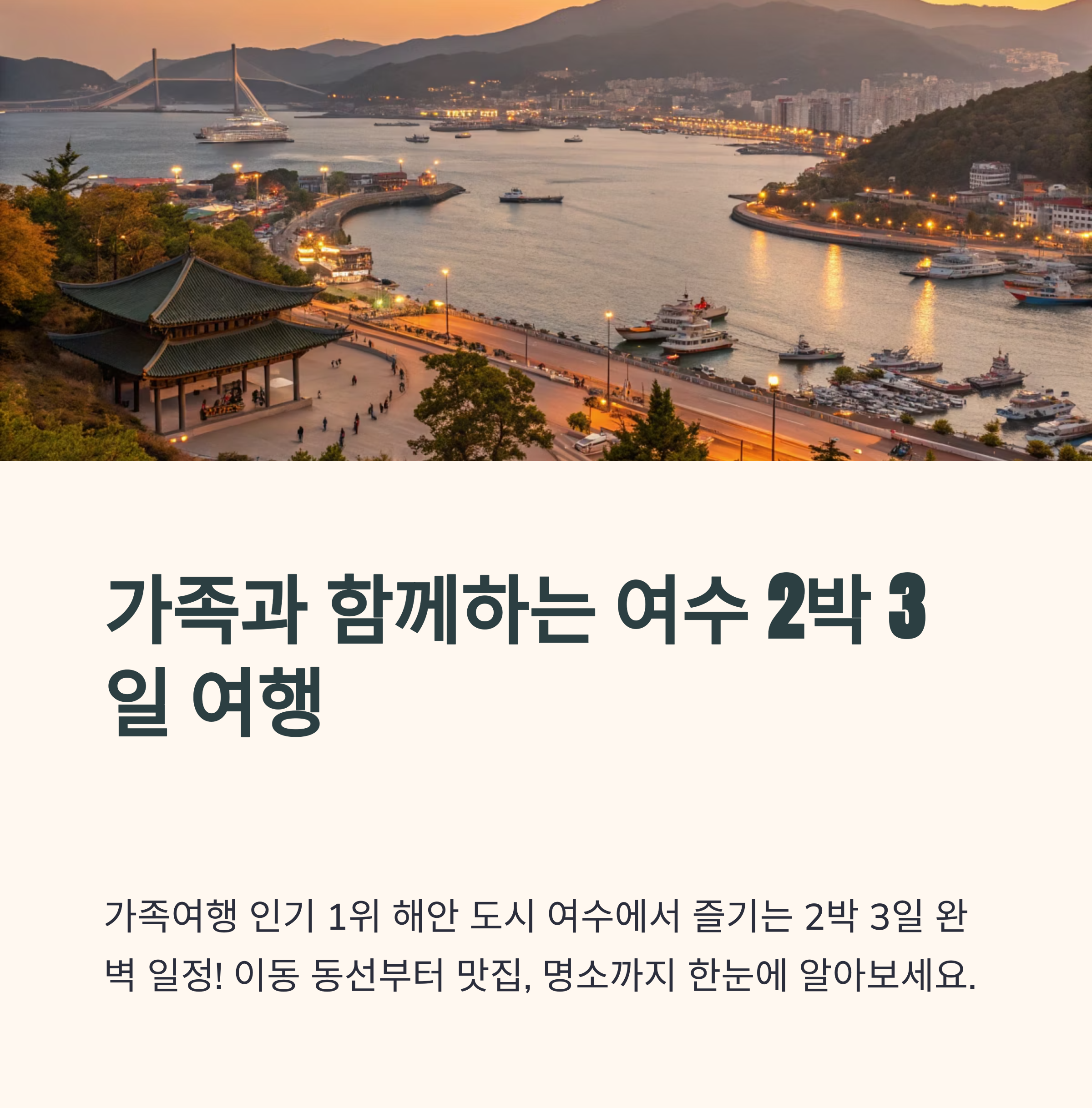 여수의 대표 명소와 체험을 가족과 함께 2박 3일 동안 즐겨보세요