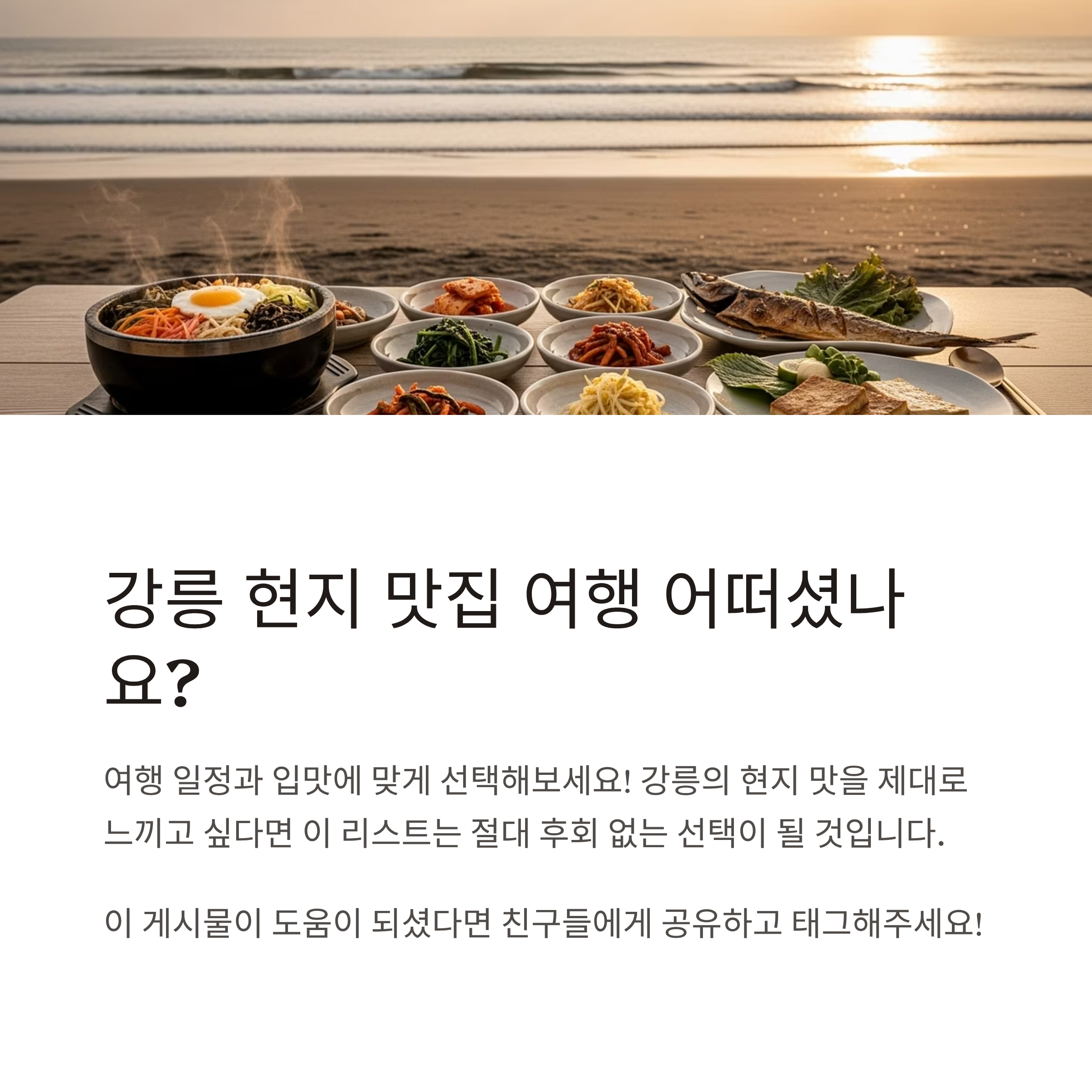 여행 일정과 입맛에 맞게 선택해보세요! 강릉의 현지 맛을 제대로 느끼고 싶다면 이 리스트는 절대 후회 없는 선택이 될 것입니다.