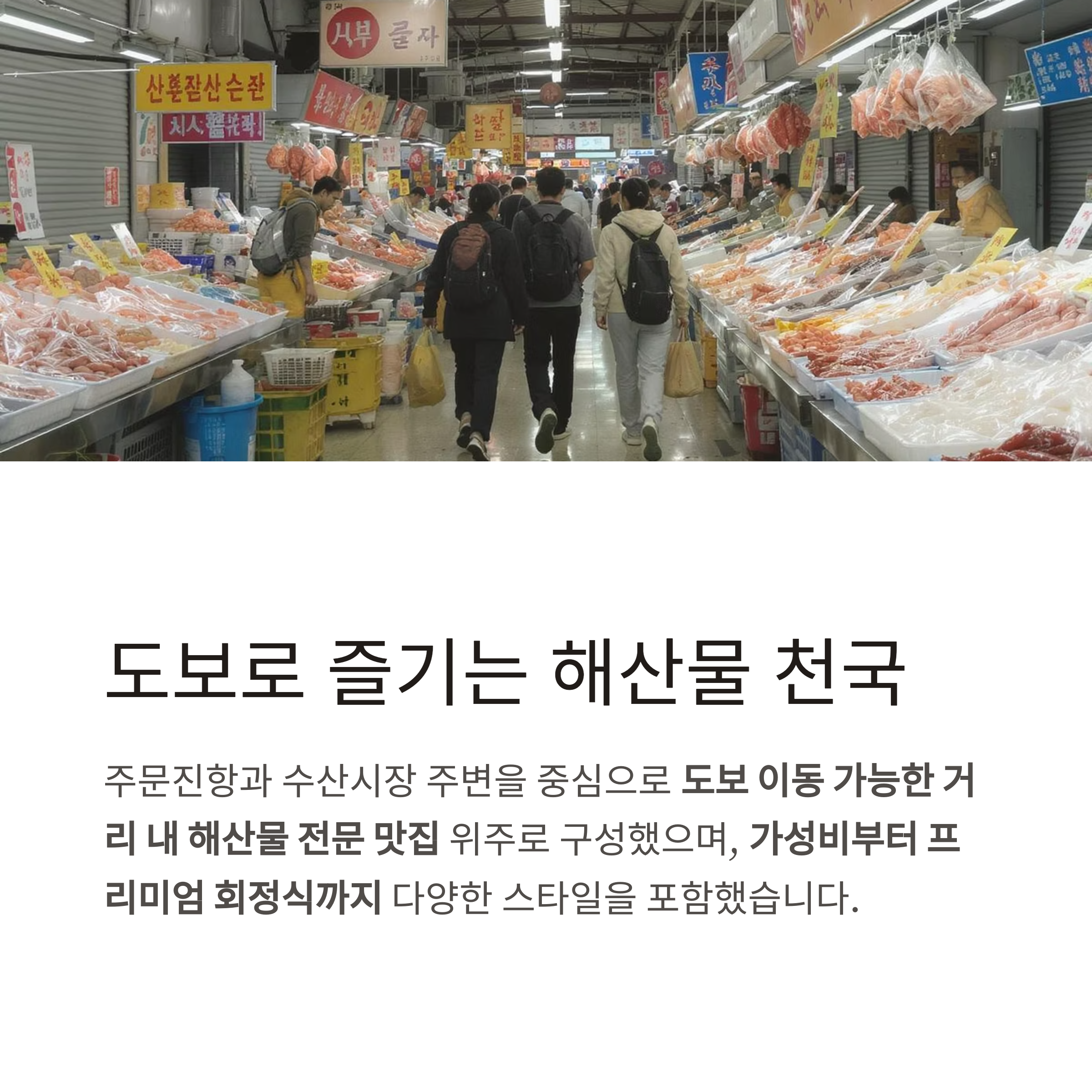 도보 이동 가능한 거리 내 해산물 전문 맛집 위주로 구성했으며,