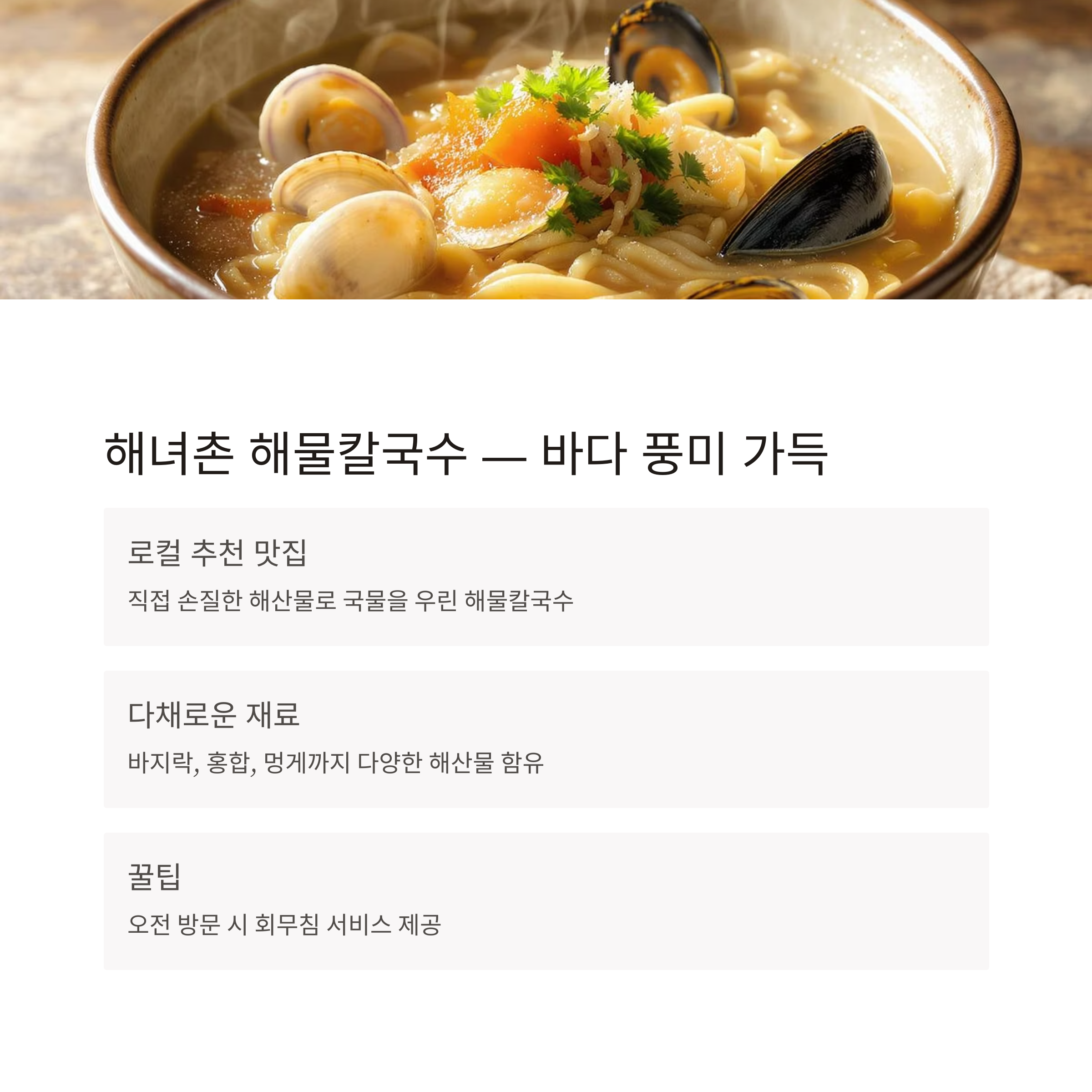4. 해녀촌 해물칼국수 — 바다 풍미 가득한 국물 맛집