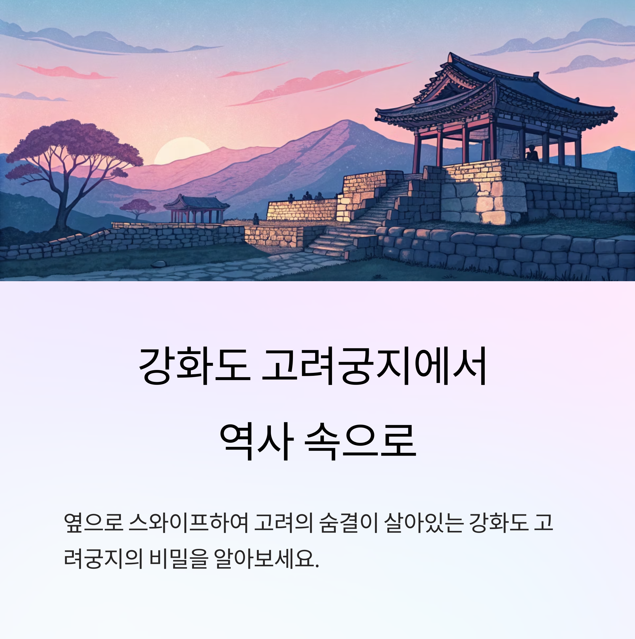 | 고려궁지 → 강화역사관 | 30분 | 궁궐 유적 + 시대별 전시 |