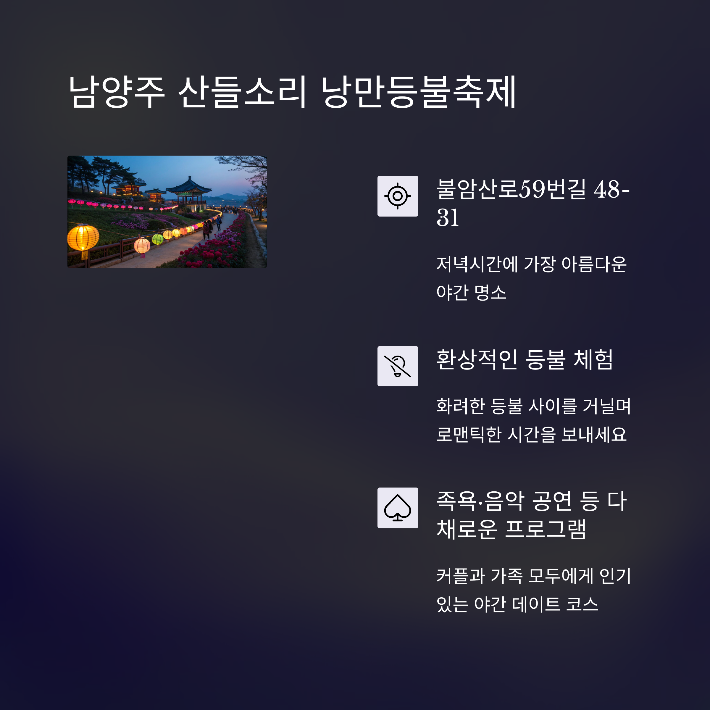 | 낭만등불축제 | 남양주 산들소리 | 등불 야경 | 봄밤 |