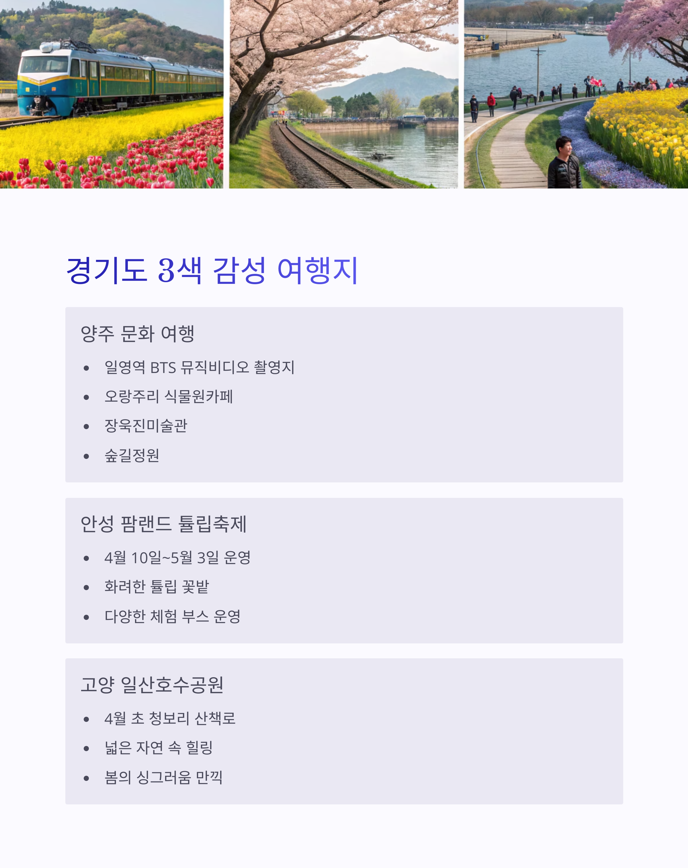 경기도 봄날 여행은 명소와 테마별로 다양한 선택지를 제공합니다.