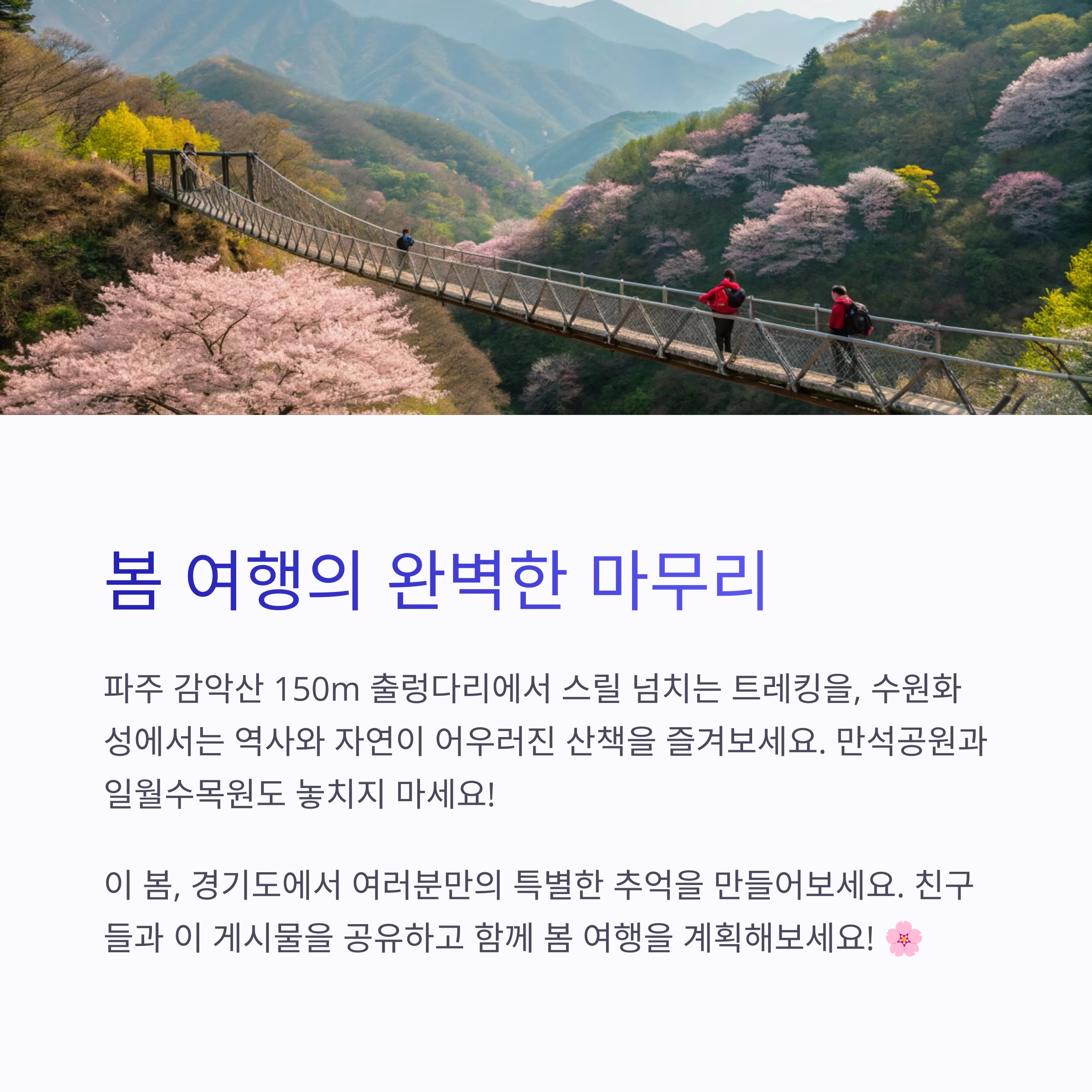 2025년 봄날의 설렘을 가득 담아 경기도 내 필수 여행 코스를 준비했습니다.
