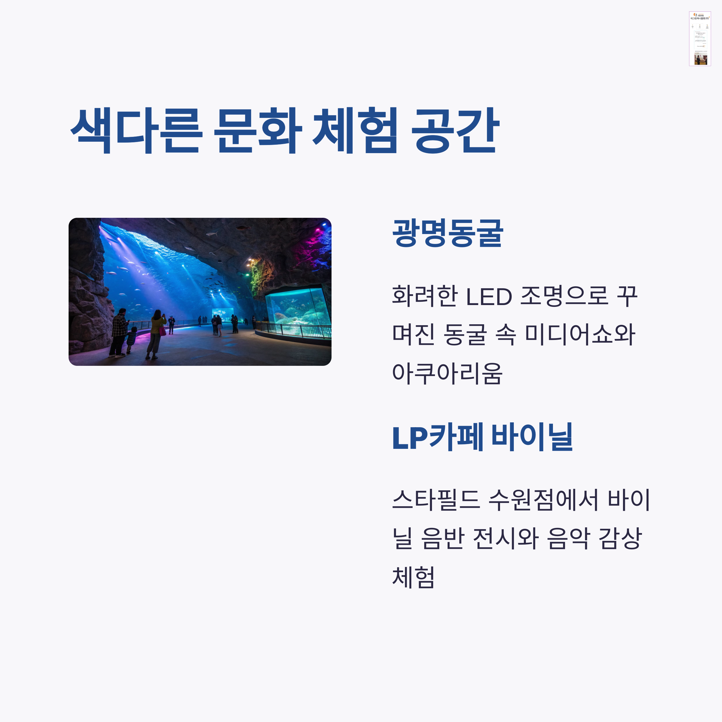 | 광명동굴 | 경기도 광명시 사성로 350 | 오전/오후 | 조명과 LED |