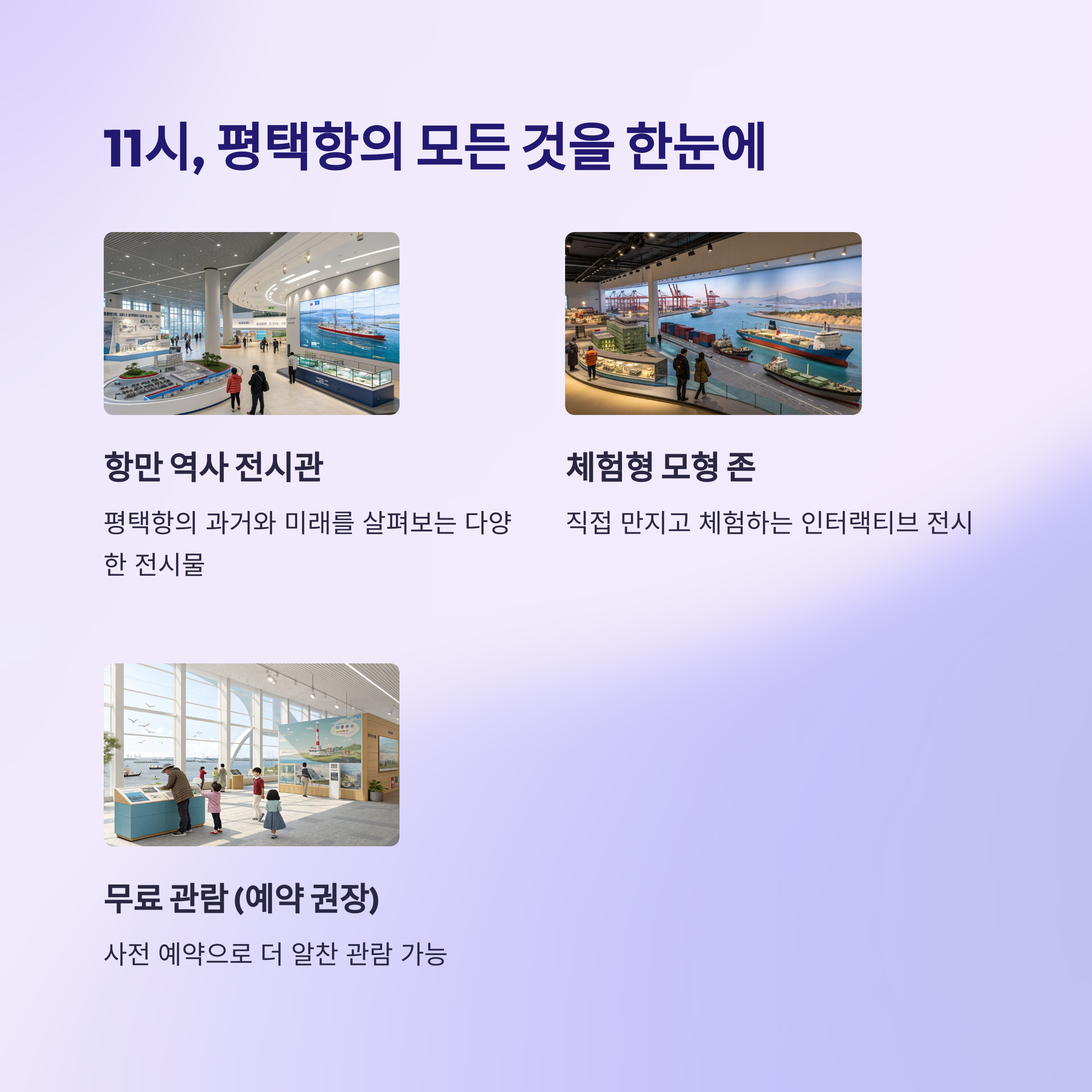 | 오전 11시 | 평택항 홍보관 | 평택항 역사 체험 |