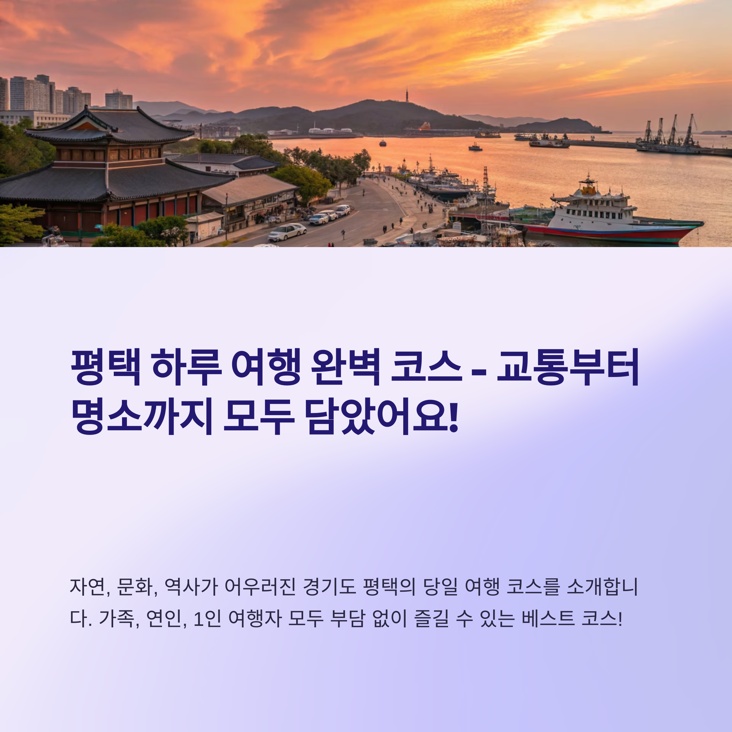 평택은 가족 및 연인을 위한 자연과 문화+산업의 균형 잡힌 여행지입니다.