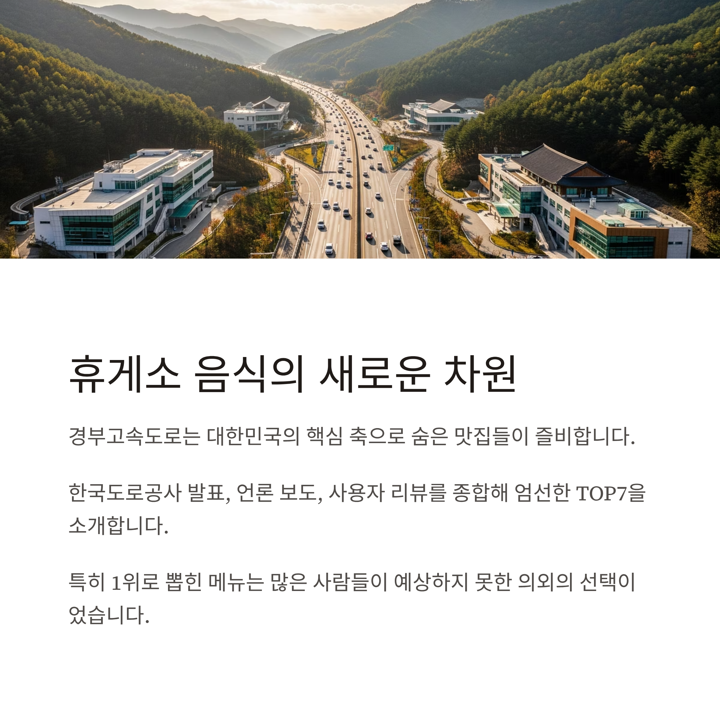 경부고속도로 맛집 TOP7을 엄선해 소개드립니다.