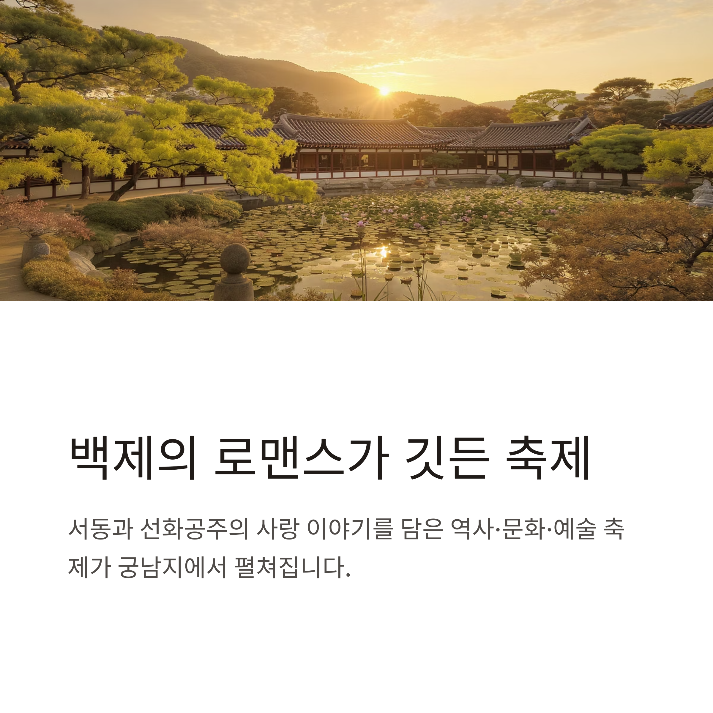 | 주제 | 백제 로맨스 서동요, 연꽃과 빛의 향연 |