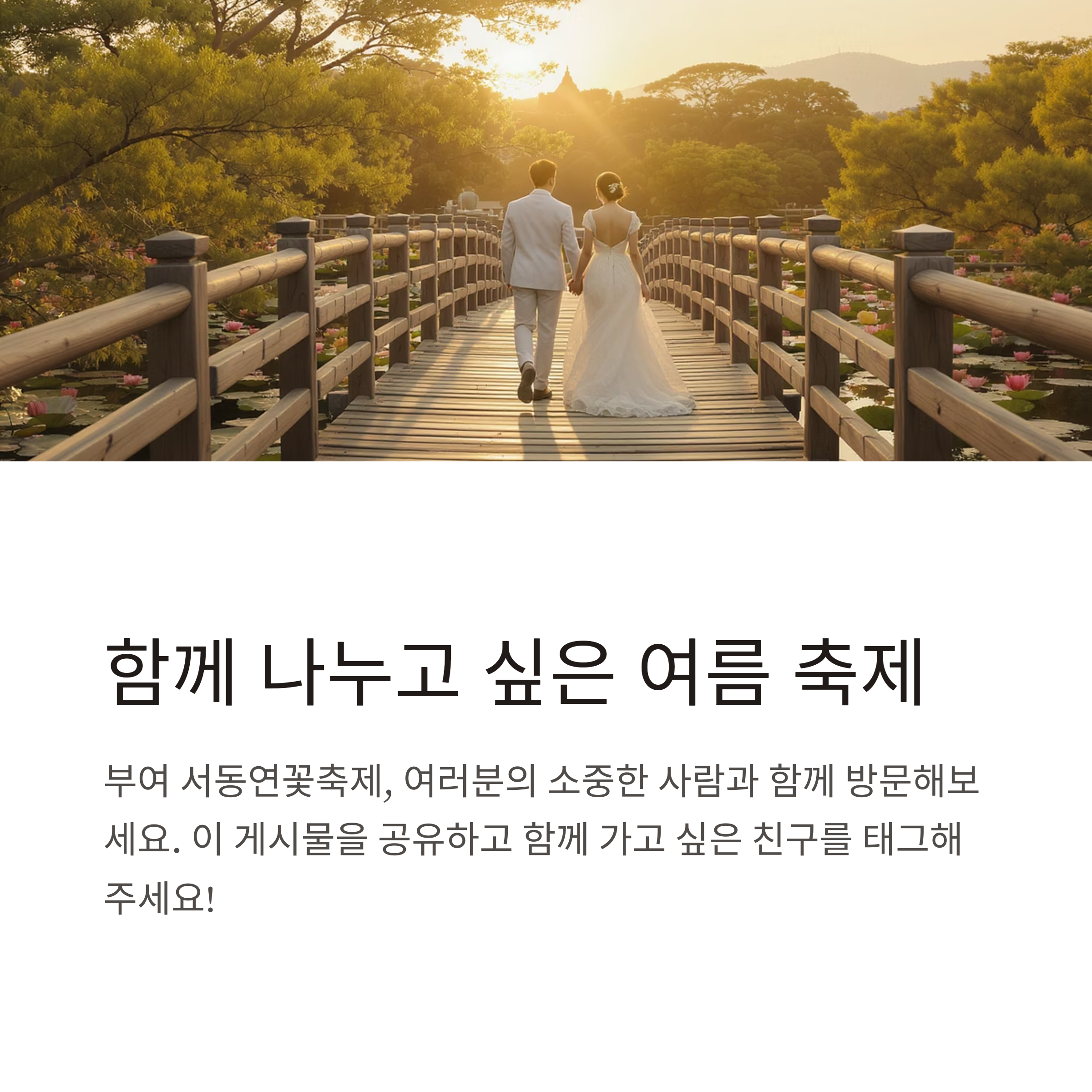 - 대표 촬영 구역: 궁남지 목조 다리 근처, 북문 쪽 연못가, 연꽃 전시온실 앞