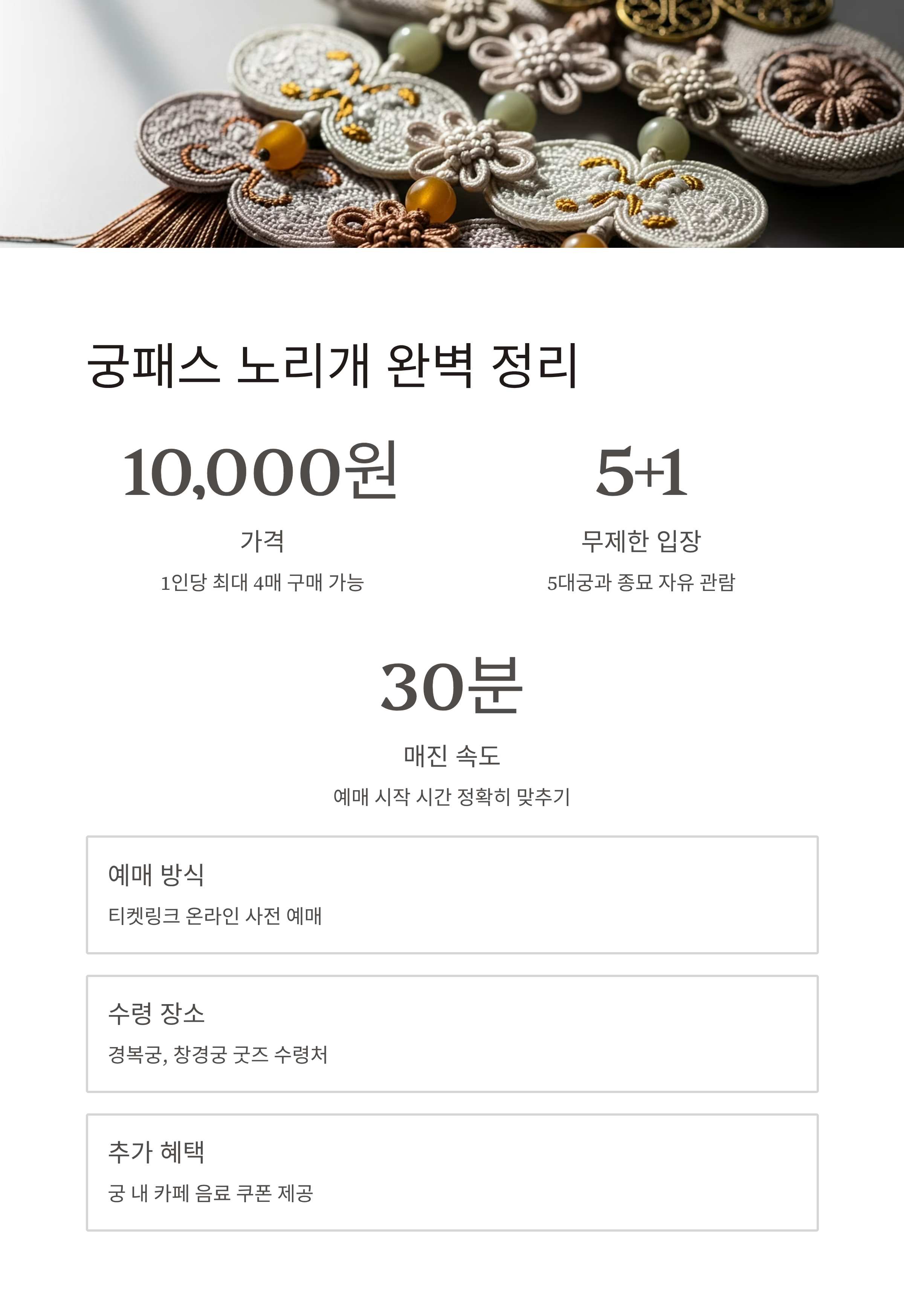 | 추가 혜택 | 궁 내 카페 ‘사랑’ 음료 쿠폰 제공 (식혜 또는 아메리카노 택1) |