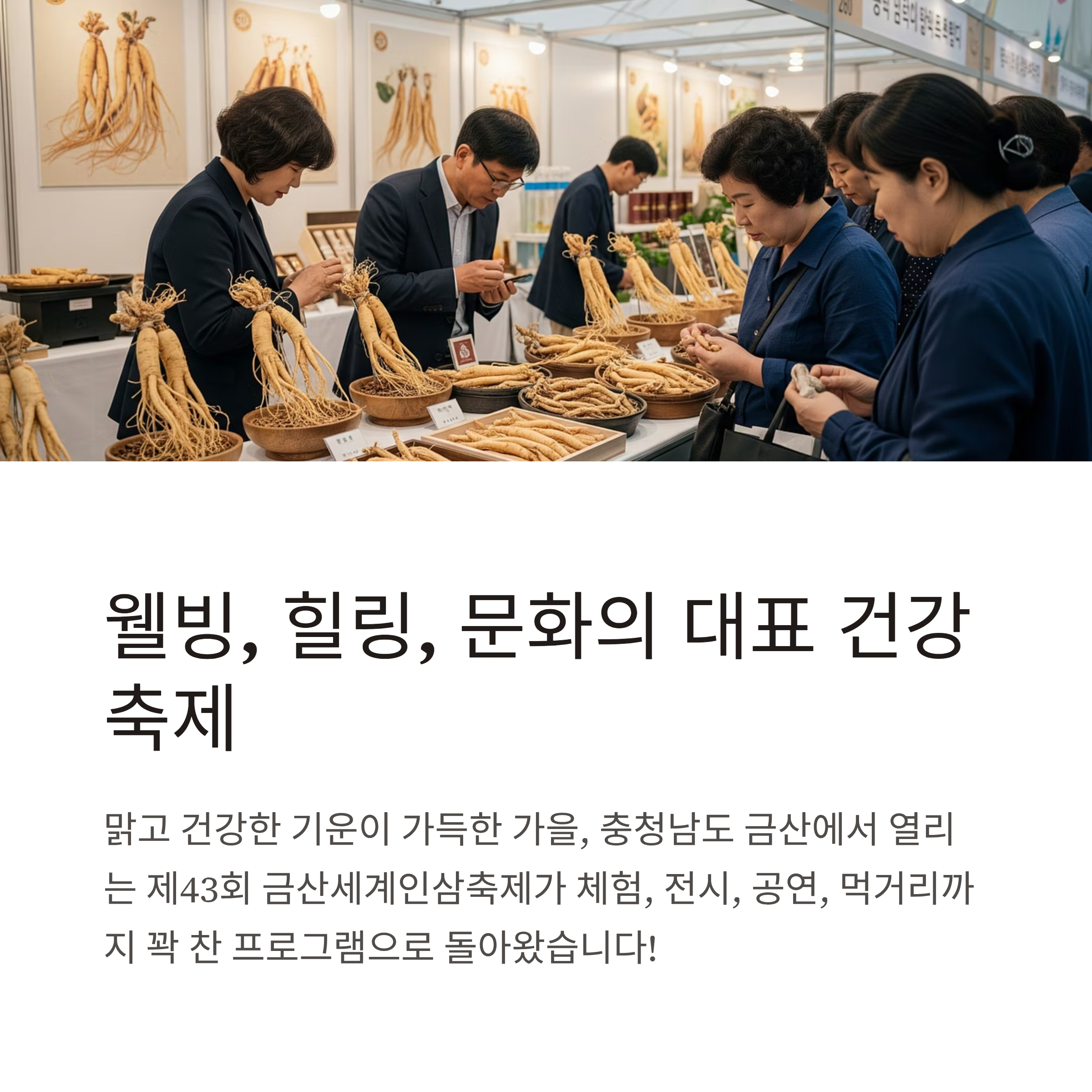 "건강하고 맛있는 가을여행, 금산세계인삼축제에서 오감으로 즐겨보세요!"