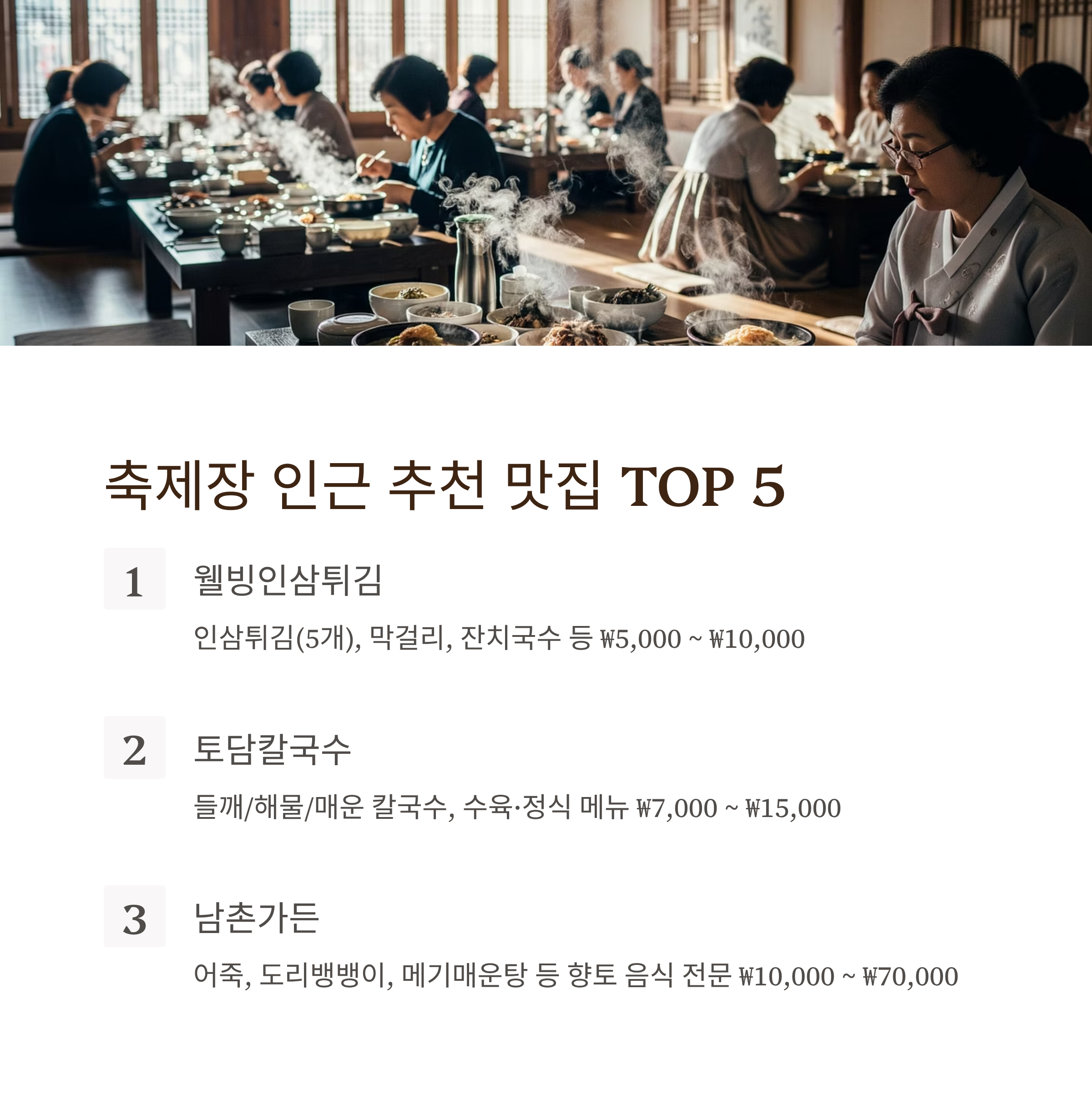🍽️ 축제장 인근 추천 맛집 TOP 5