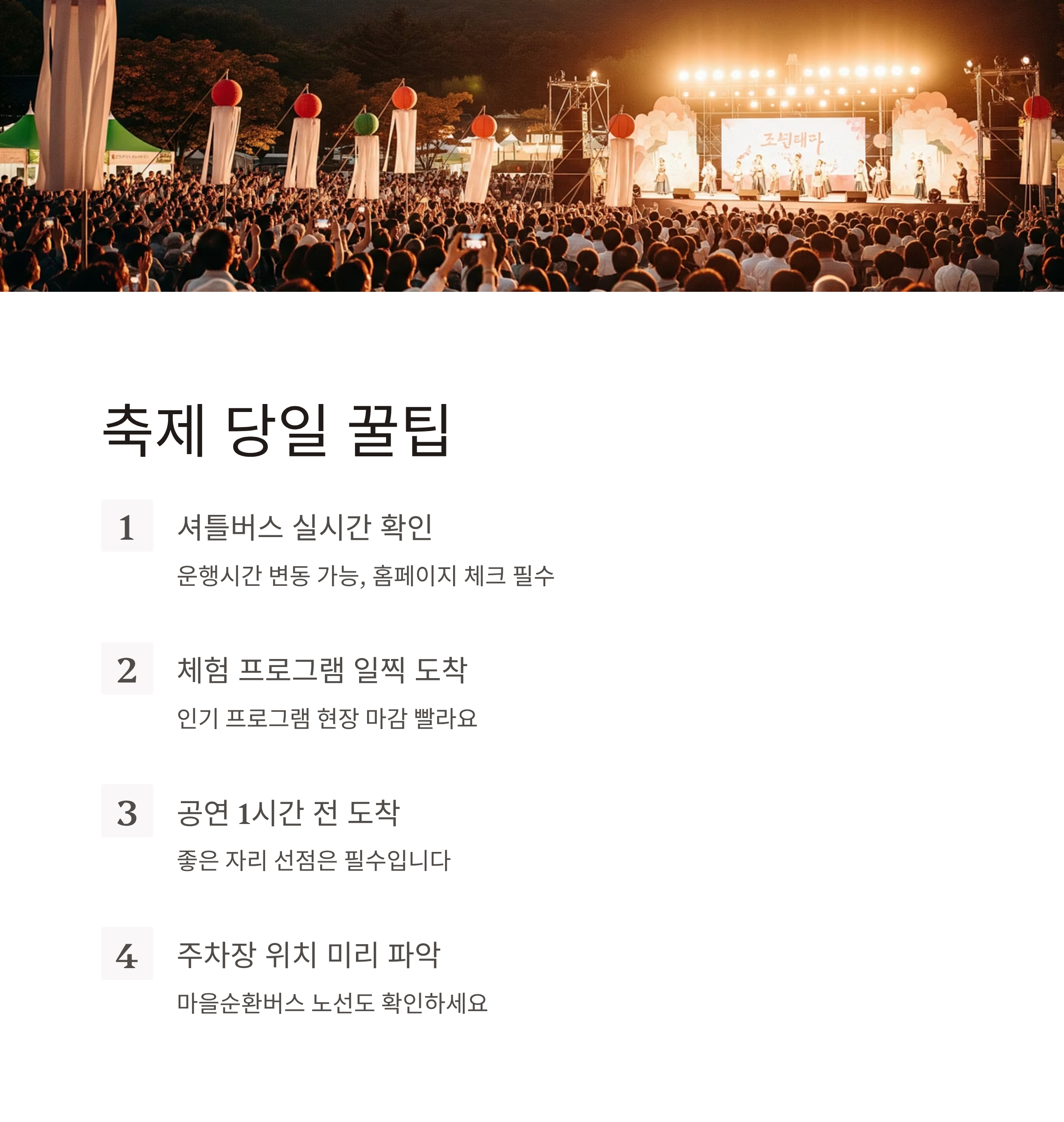 마지막 꿀팁! 축제 당일 이것만은 꼭 체크하세요