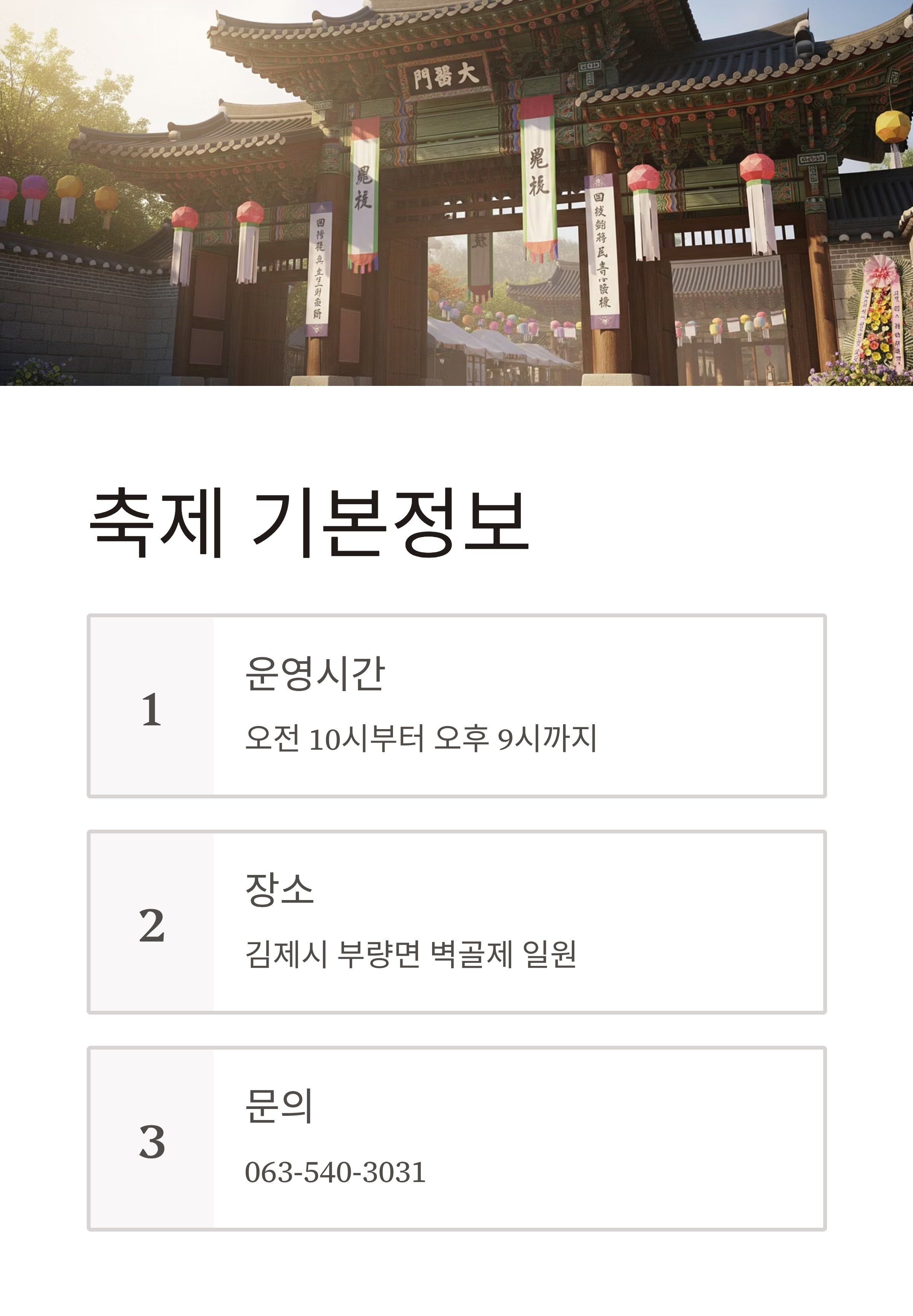 | 문의처 | 063-540-3031 / 공식 홈페이지 |