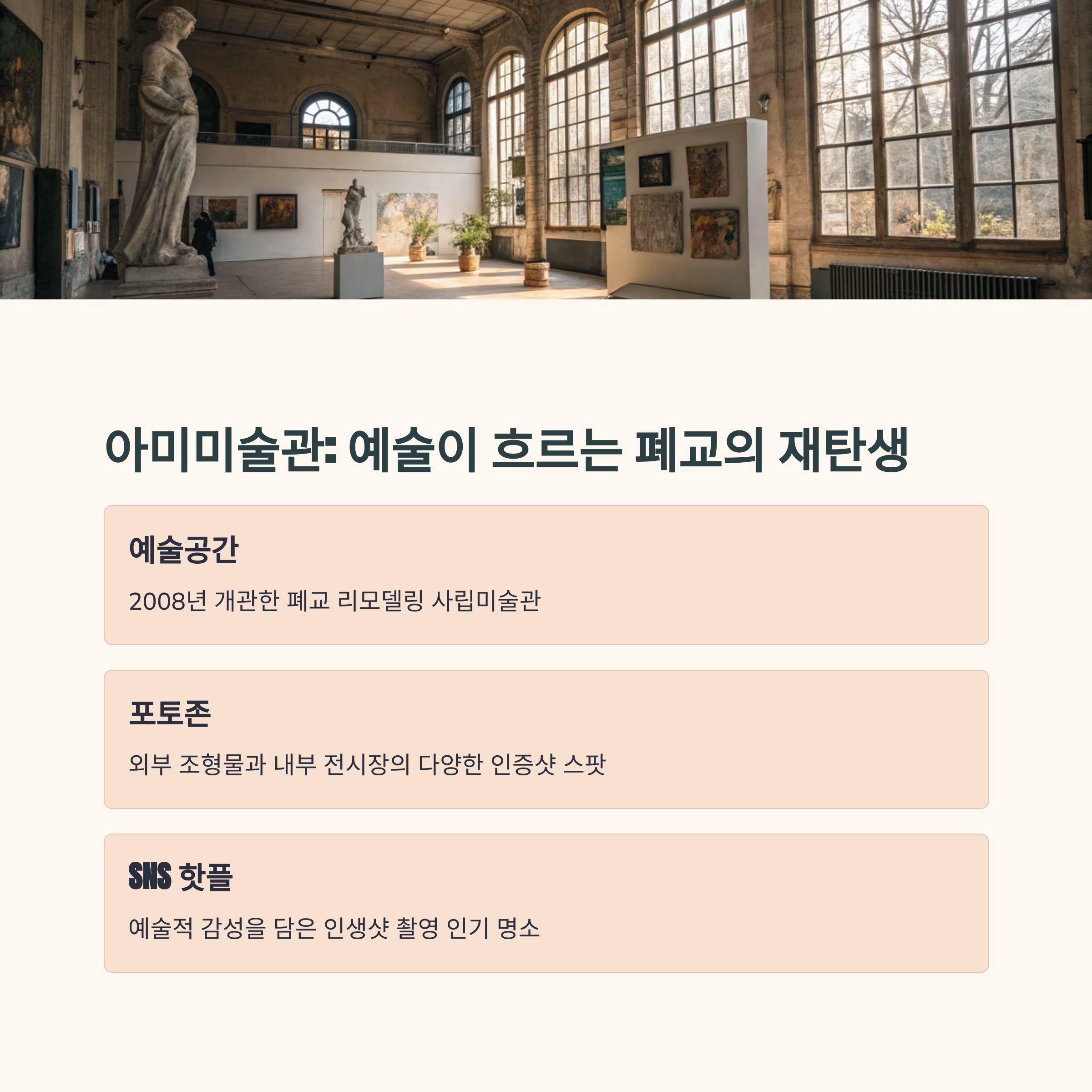 첫 번째 방문지인 아미미술관은 폐교에 새로운 의미를 담은 미술 공간입니다.