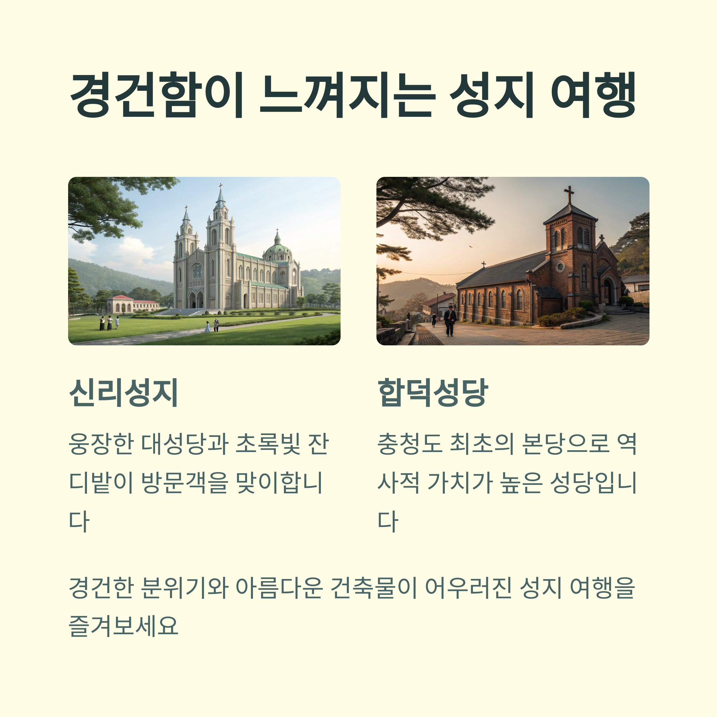 또한, 신리성지는 역사적인 천주교 성지로, 웅장한 성당과 조용한 분위기 속에서 여유를 즐길 수 있는 명소입니다.