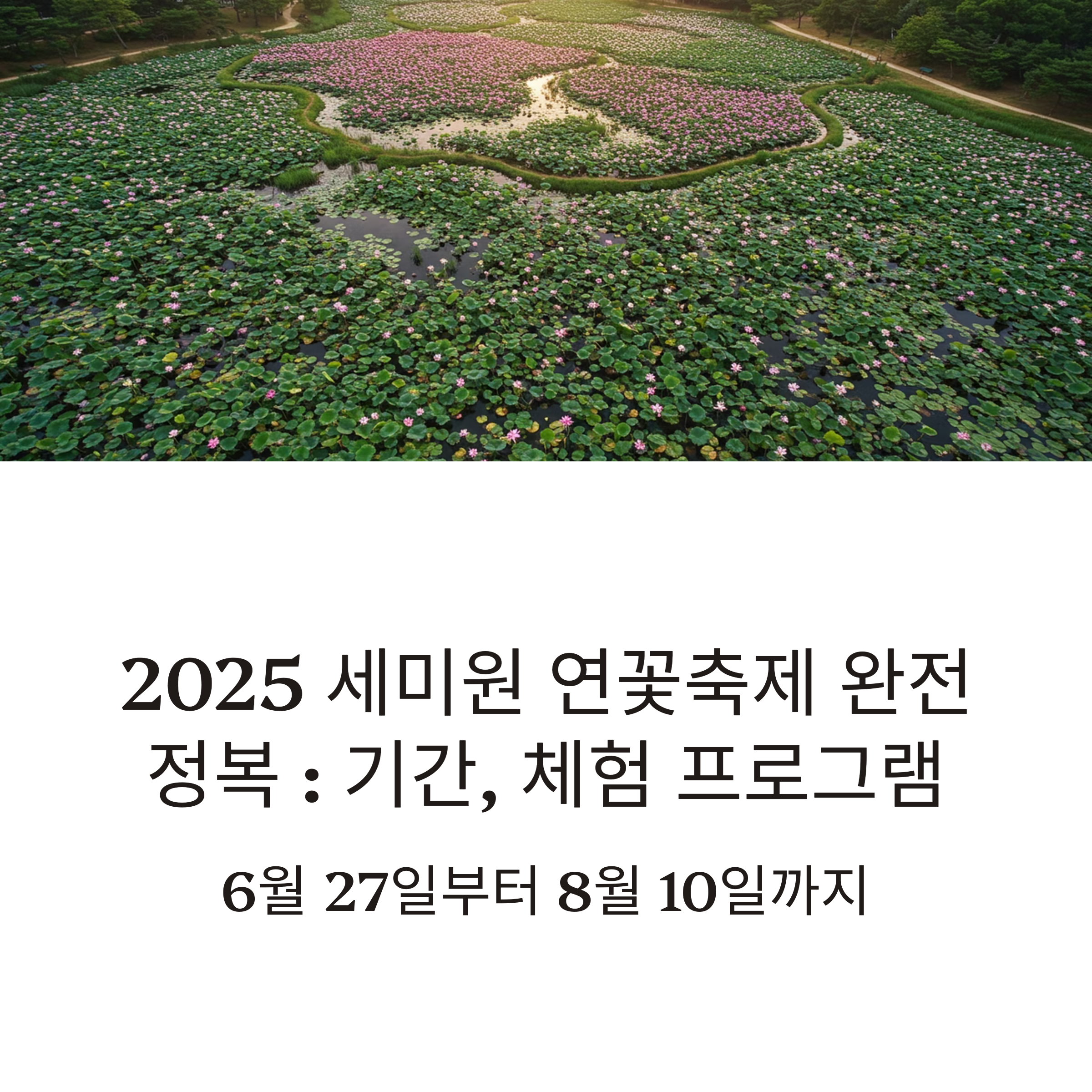 2025년 세미원 연꽃문화제는 6월 27일(금)부터 8월 10일(일)까지 운영됩니다.