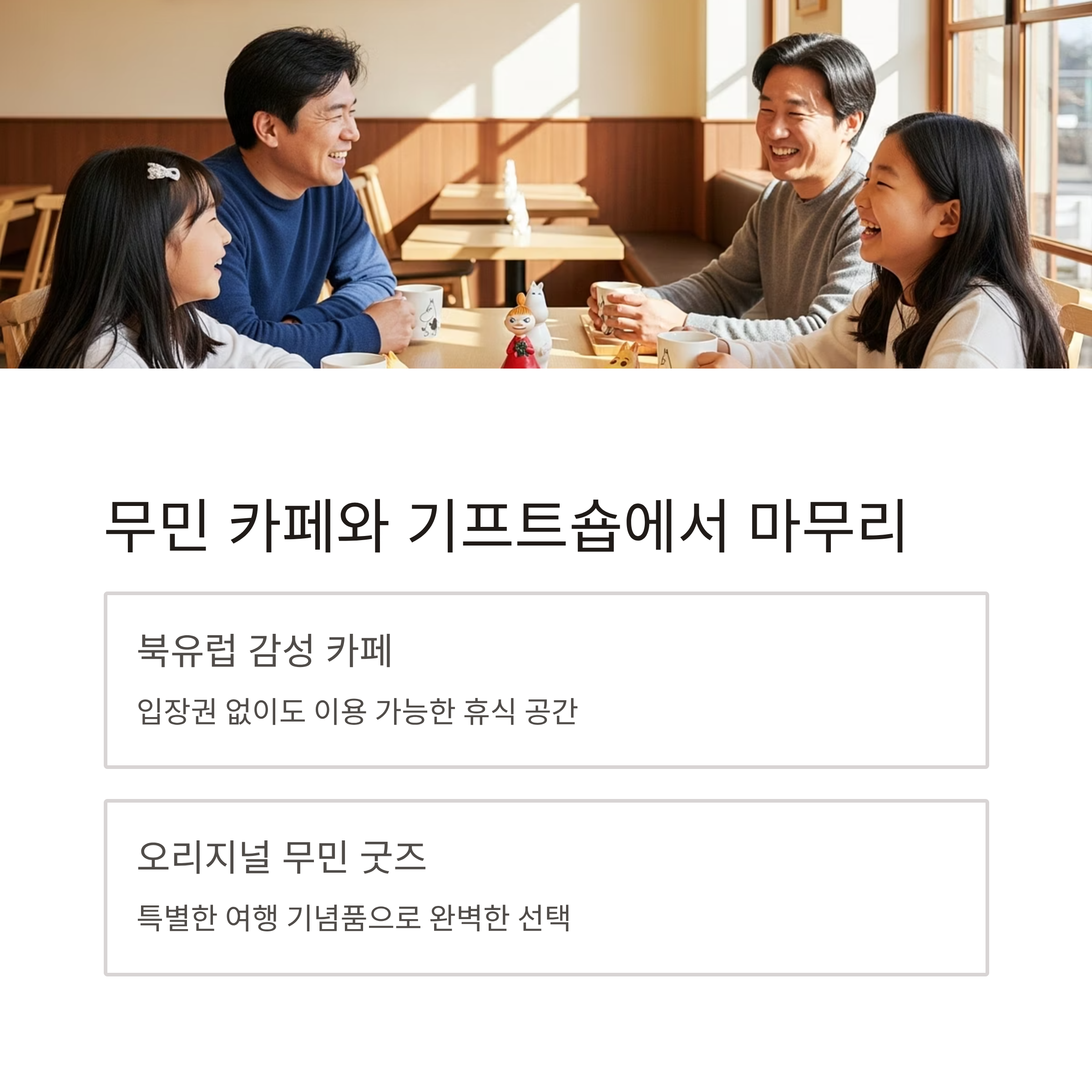 관람 후 무민 카페에서 북유럽 감성 인테리어와 함께 휴식을 즐기고,