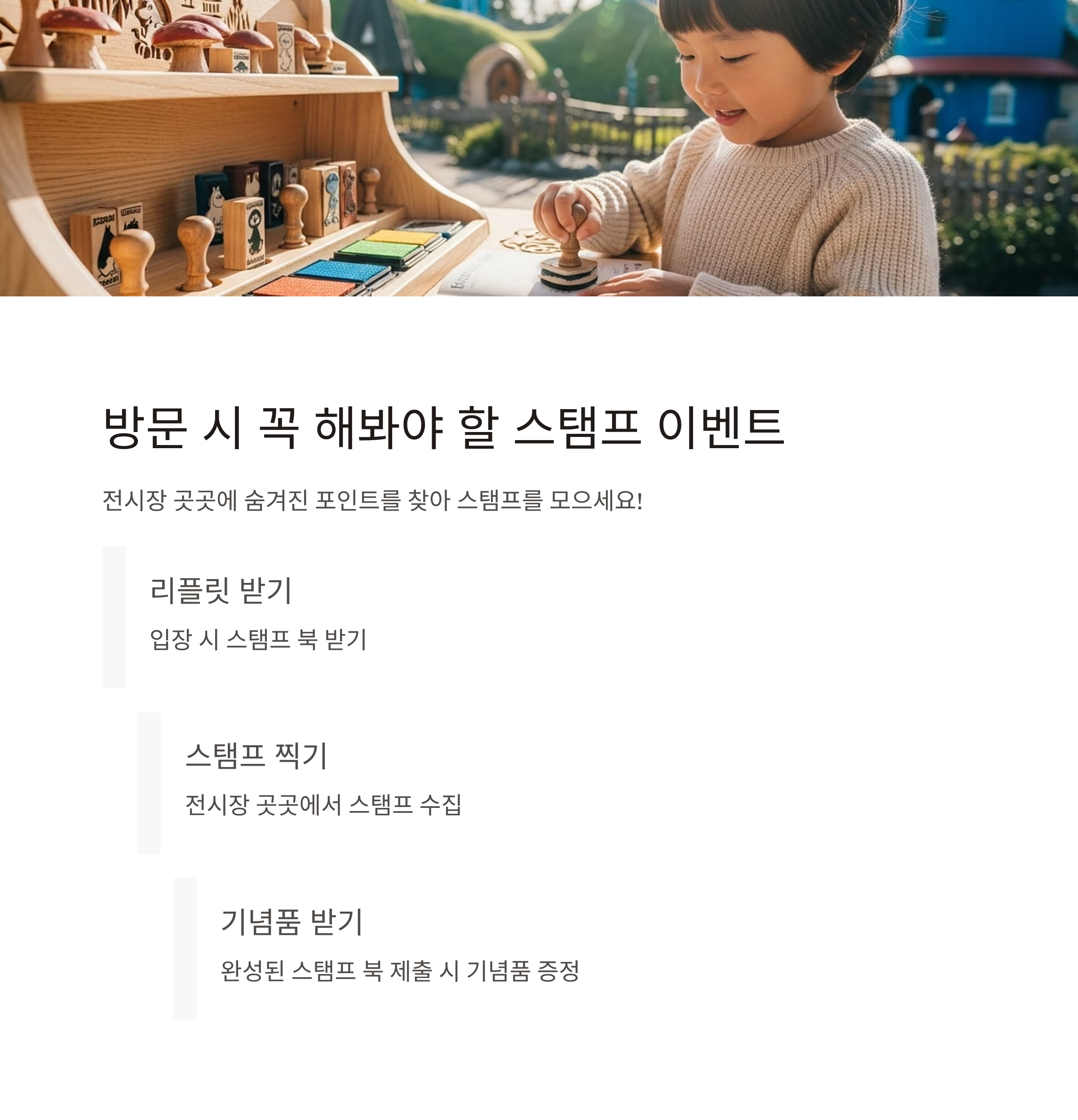 오전에는 온라인 예매 후 무민랜드로 이동해 전시와 스탬프 이벤트를 즐기고,