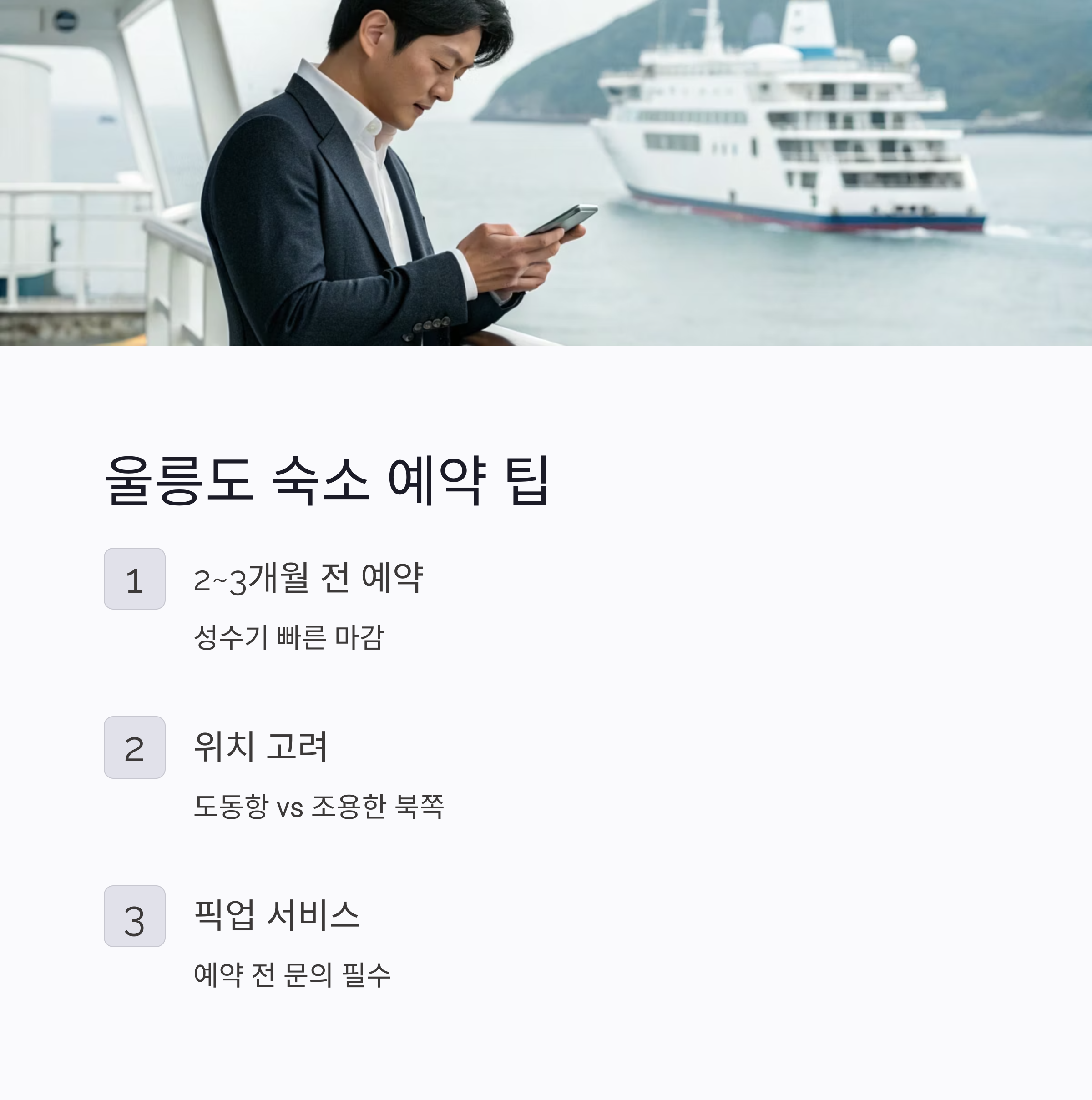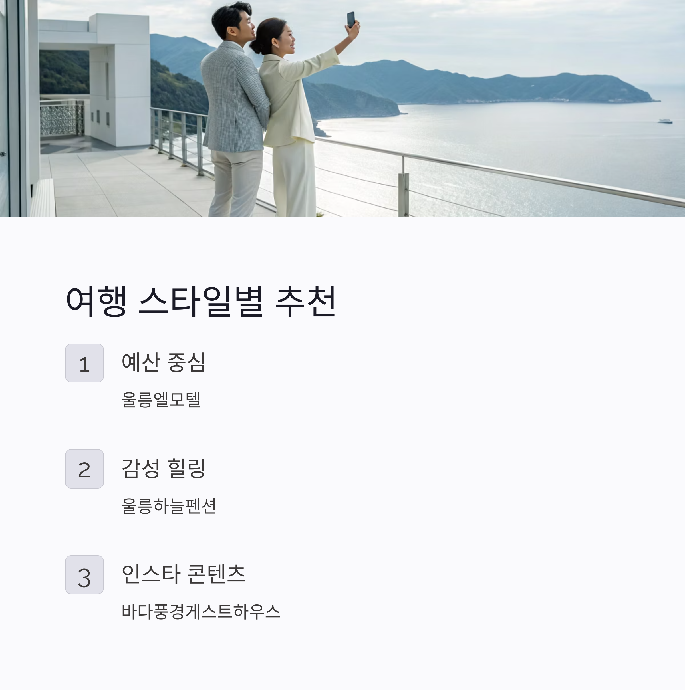 신중한 숙소 선택이 울릉도 여행의 품질을 결정짓는 핵심 포인트입니다.