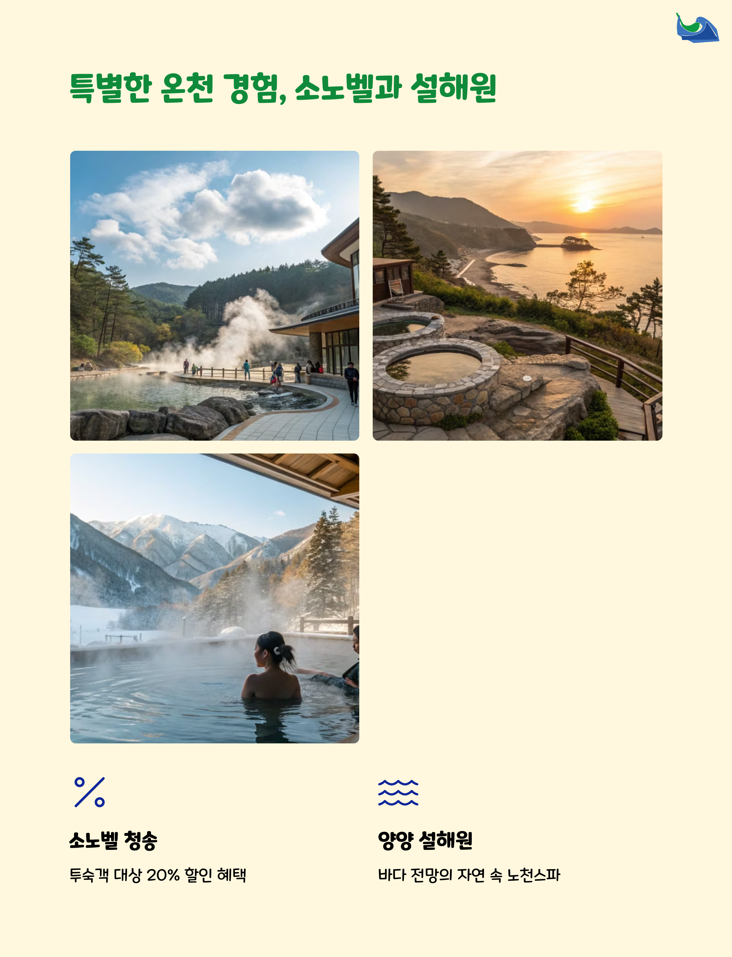 또한 양양 설해원 노천스파에서는 탁 트인 바다와 어우러진 힐링 경험을 제공합니다.