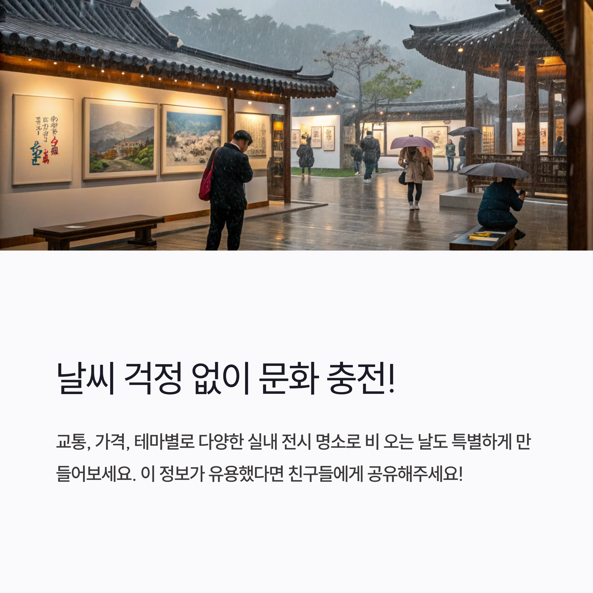 서울과 주요 지역 실내 전시 명소는 날씨와 관계없이 풍부한 문화 체험을 제공합니다.