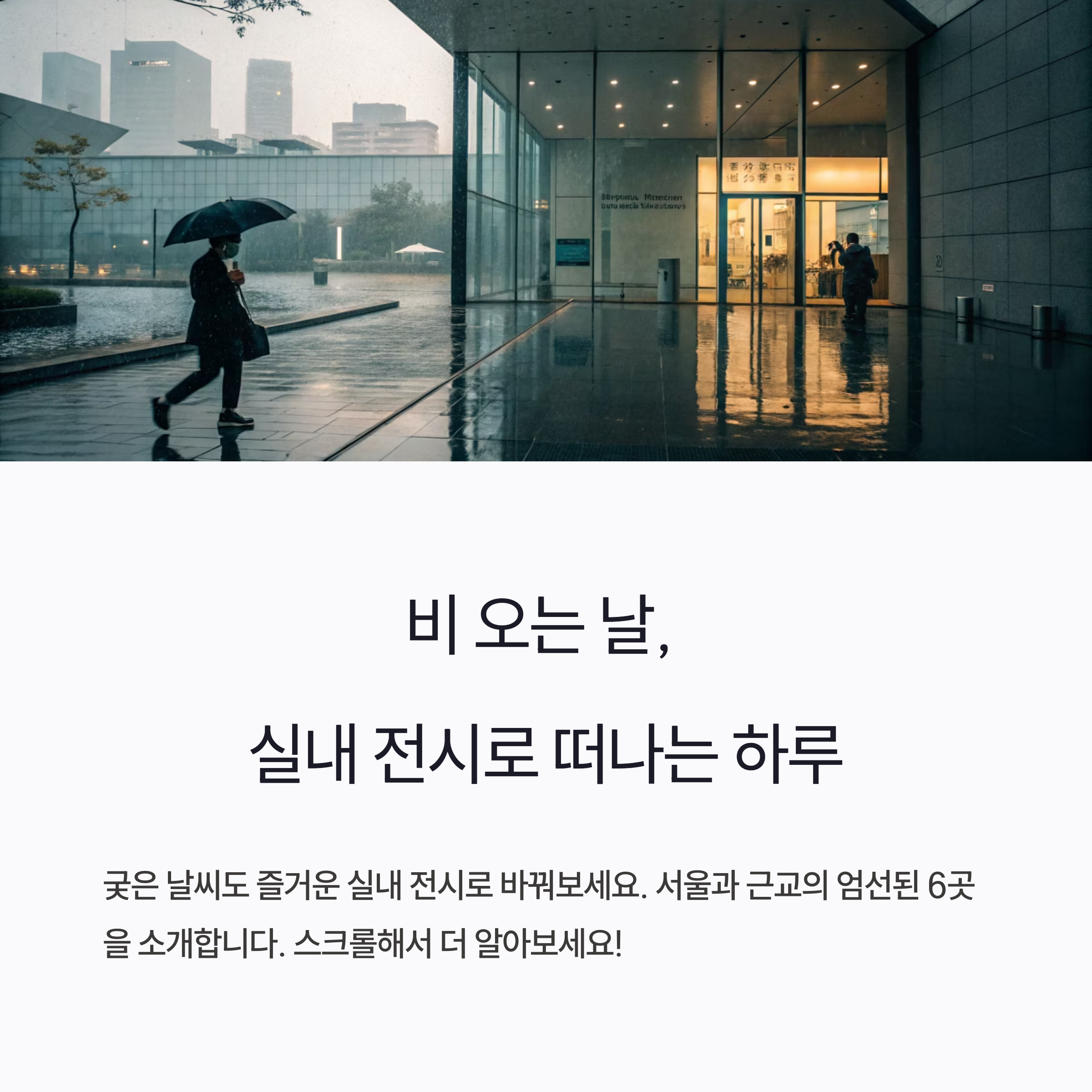 오늘은 비 오는 날 실내에서 즐기기 좋은 전시 명소를 추천드립니다.