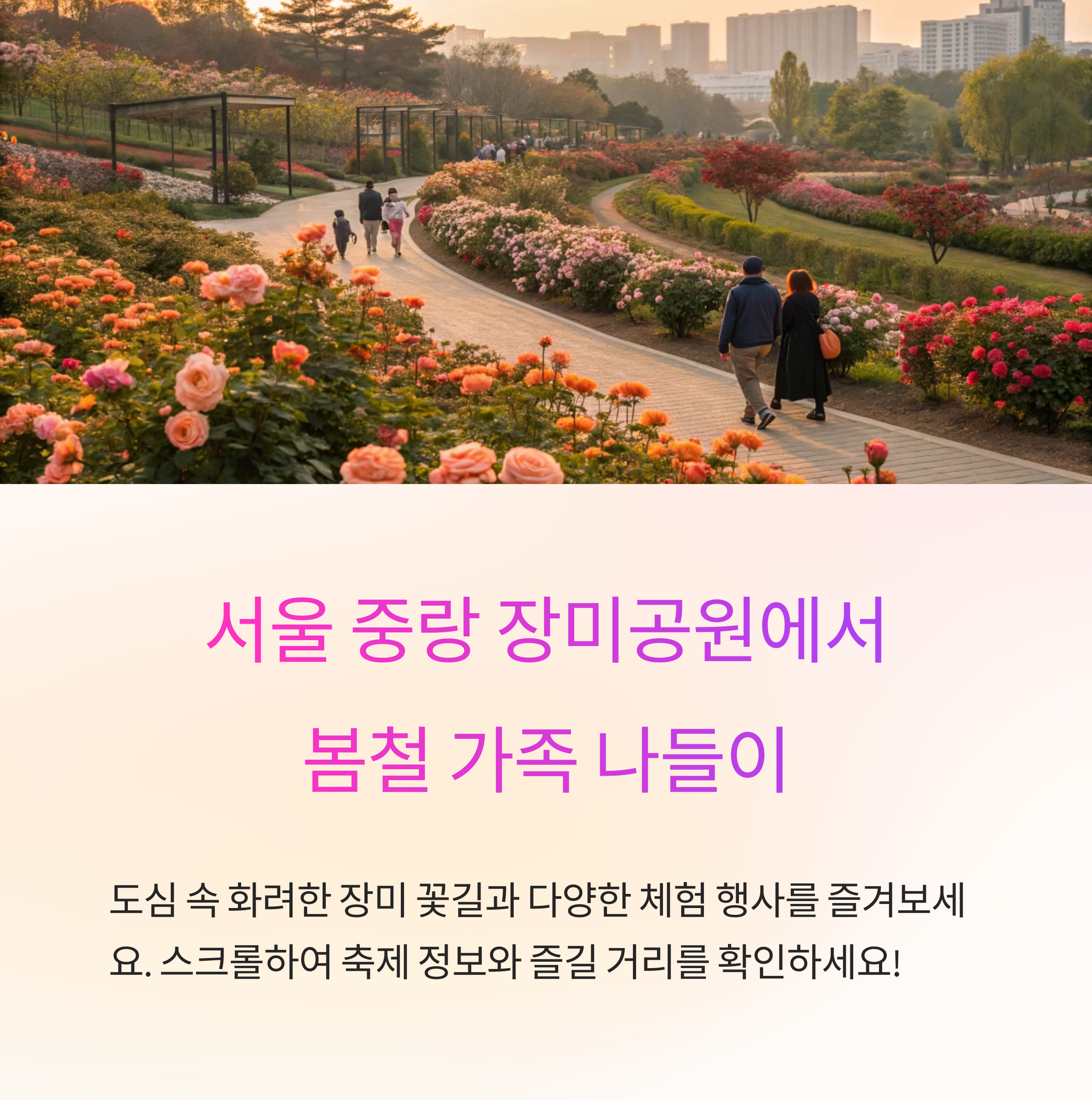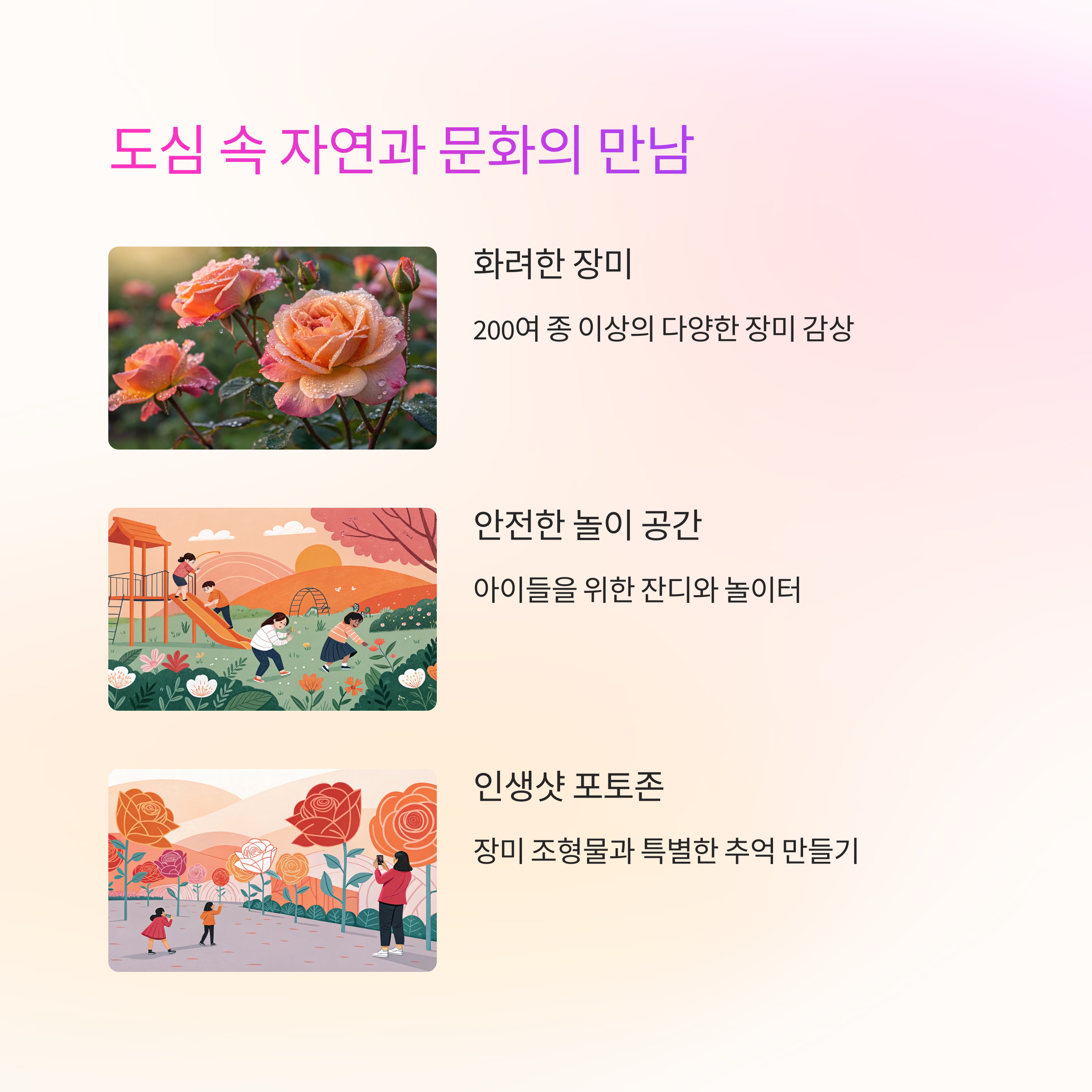 중랑 장미공원은 도심 속에서 자연과 문화를 동시에 즐길 수 있는 공간으로