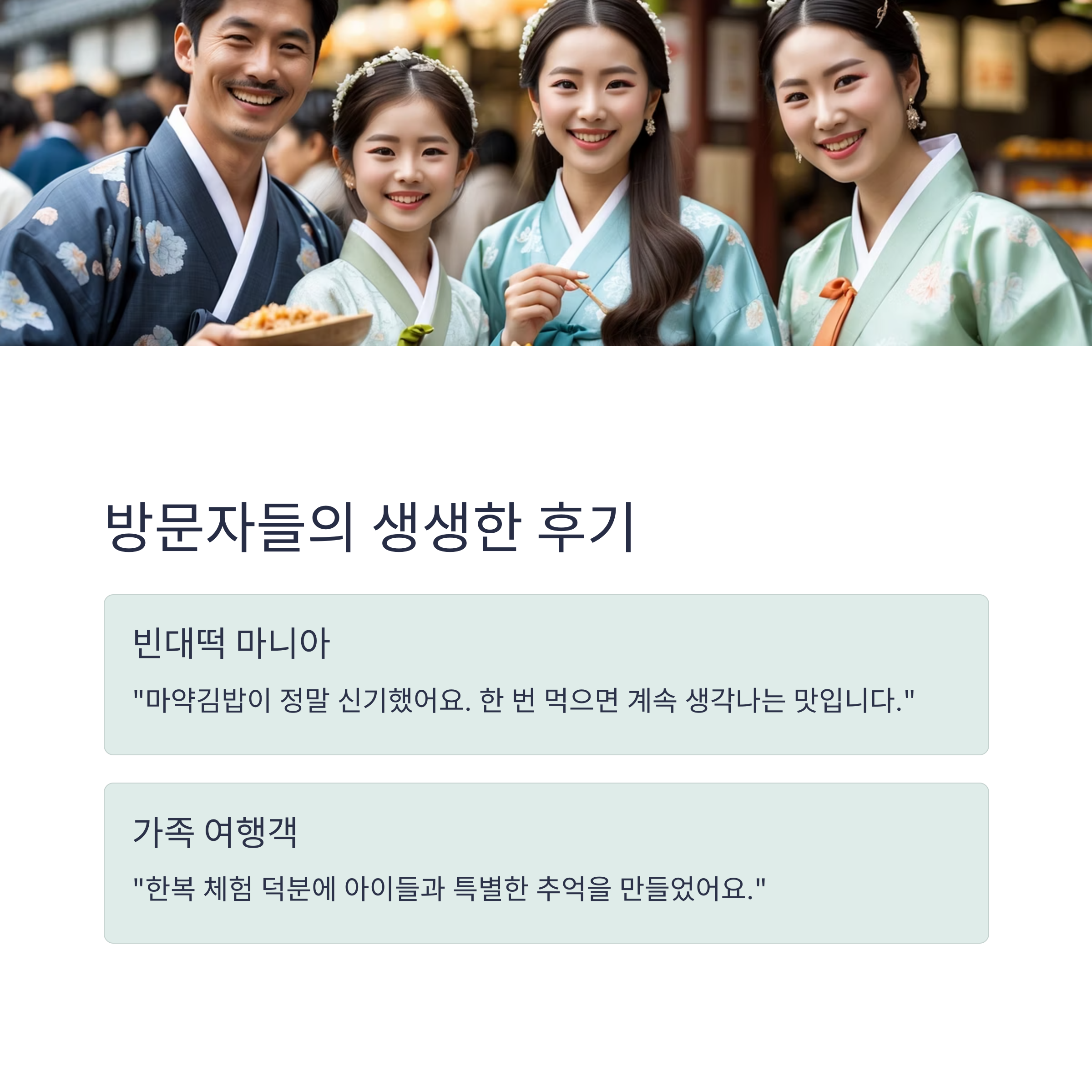 “한복 체험 덕분에 아이들과 특별한 추억을 만들었어요.