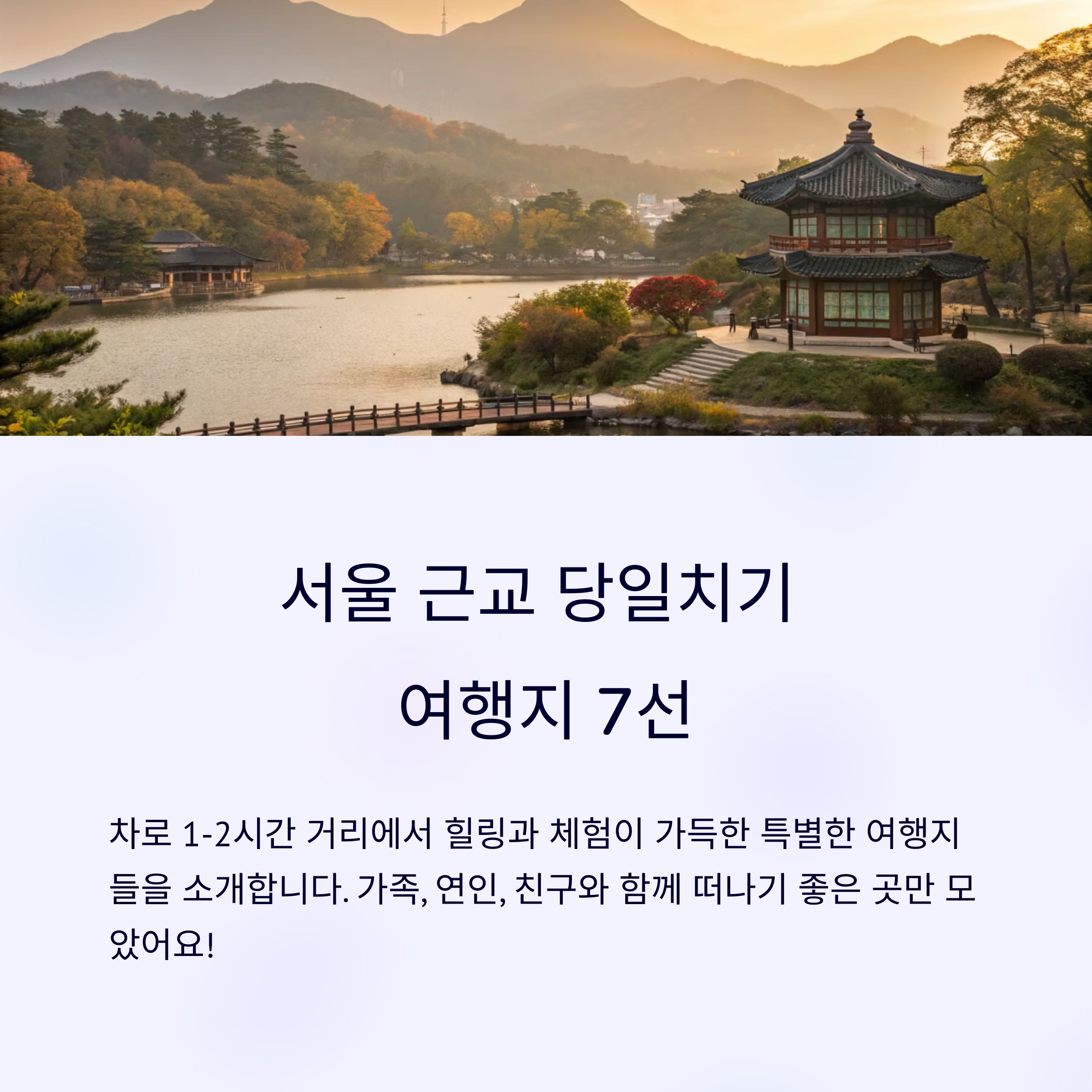 가벼운 준비로 떠날 수 있는 서울 근교 여행지는 접근성이 매우 우수합니다.