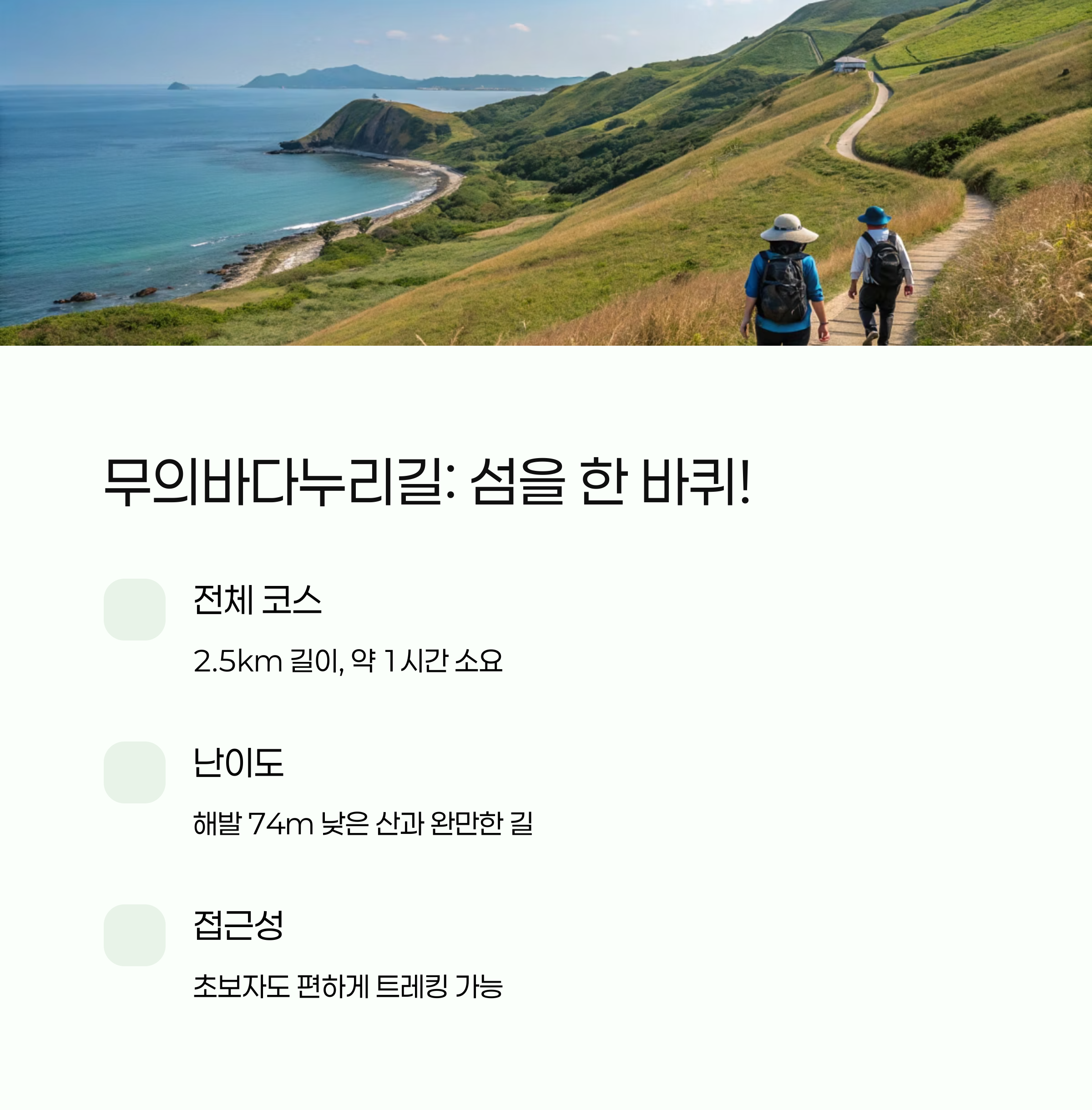 | 소무의도 무의바다누리길 | 약 2.5km | 약 1시간 |