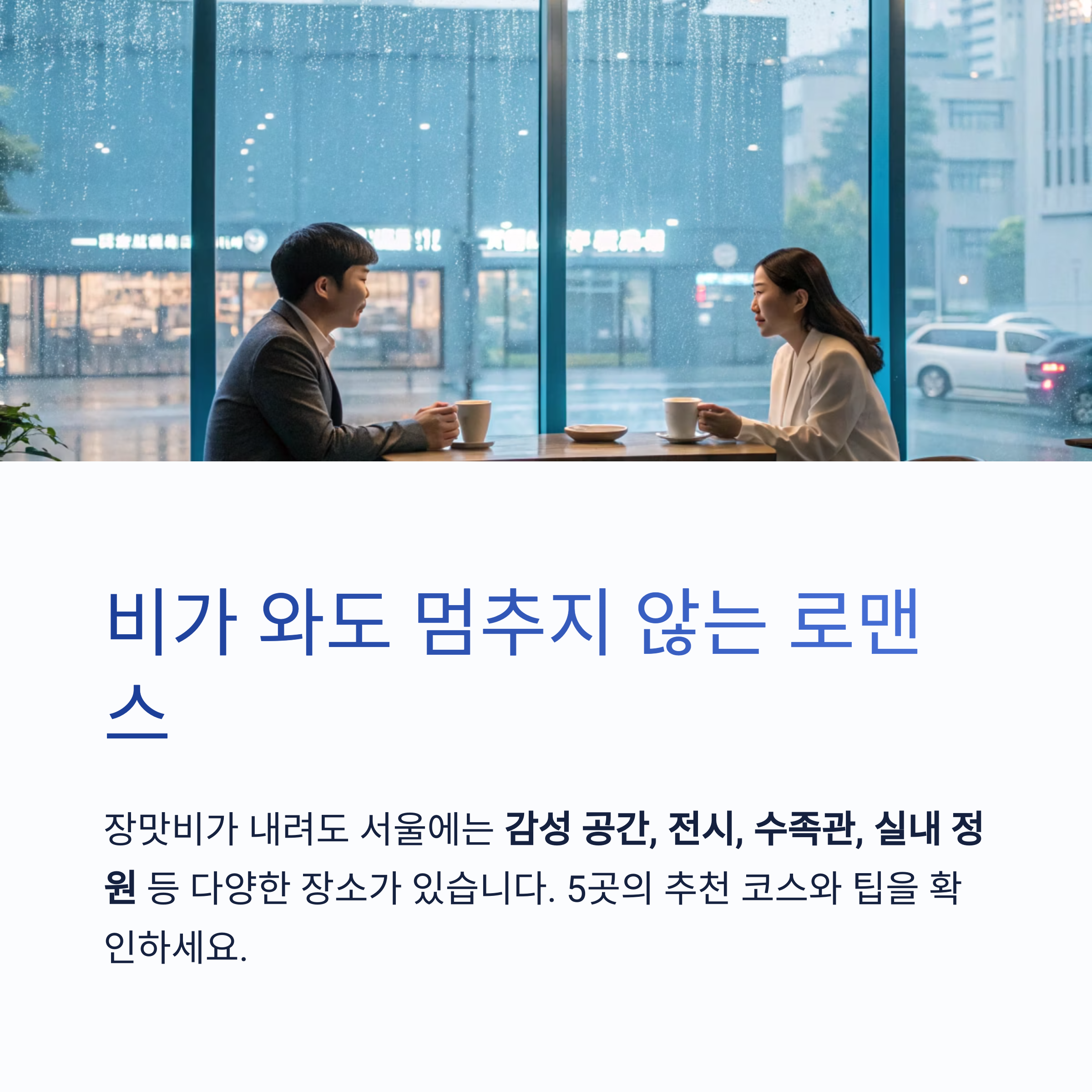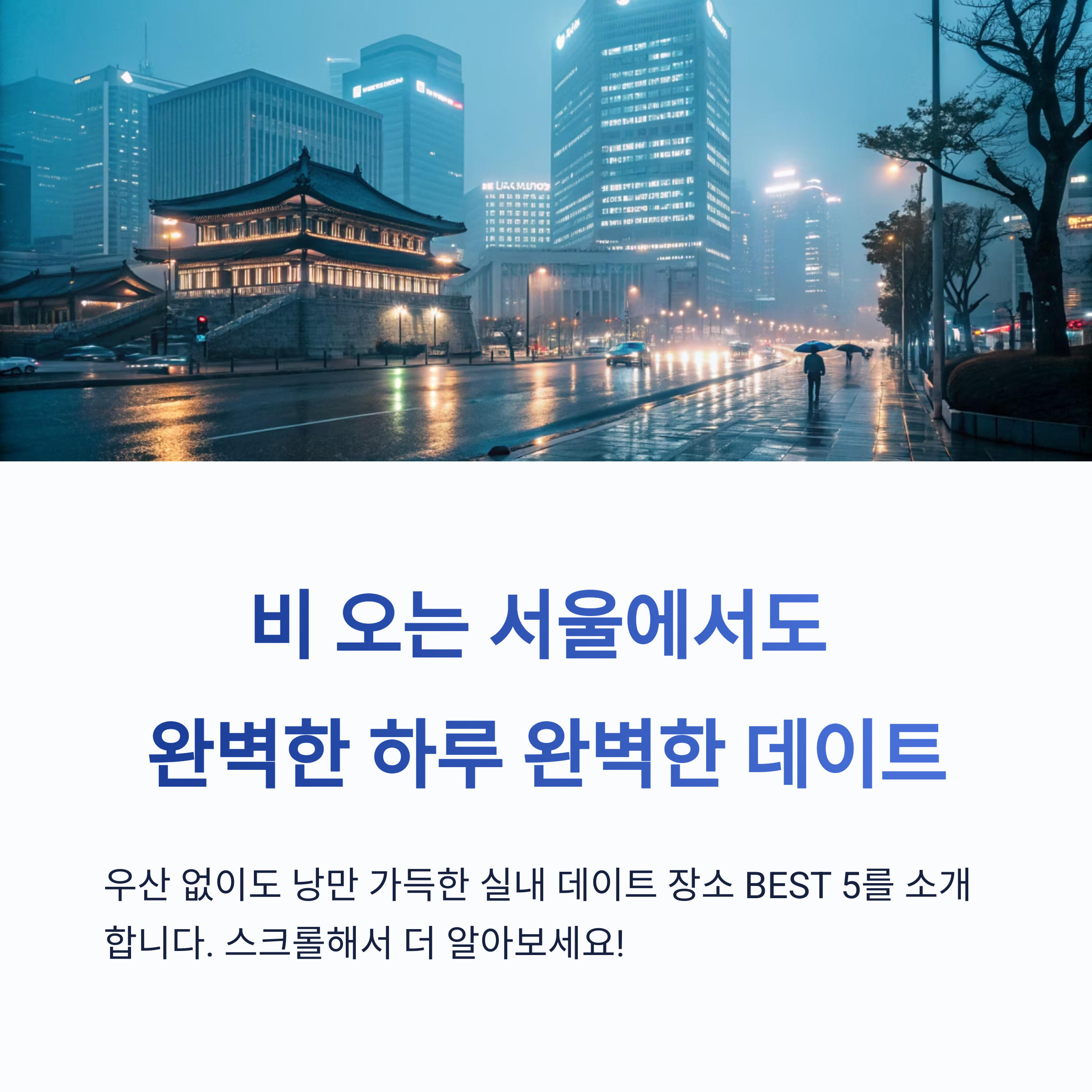 서울엔 비 오는 날 더 빛나는 실내 데이트 장소들이 있습니다.