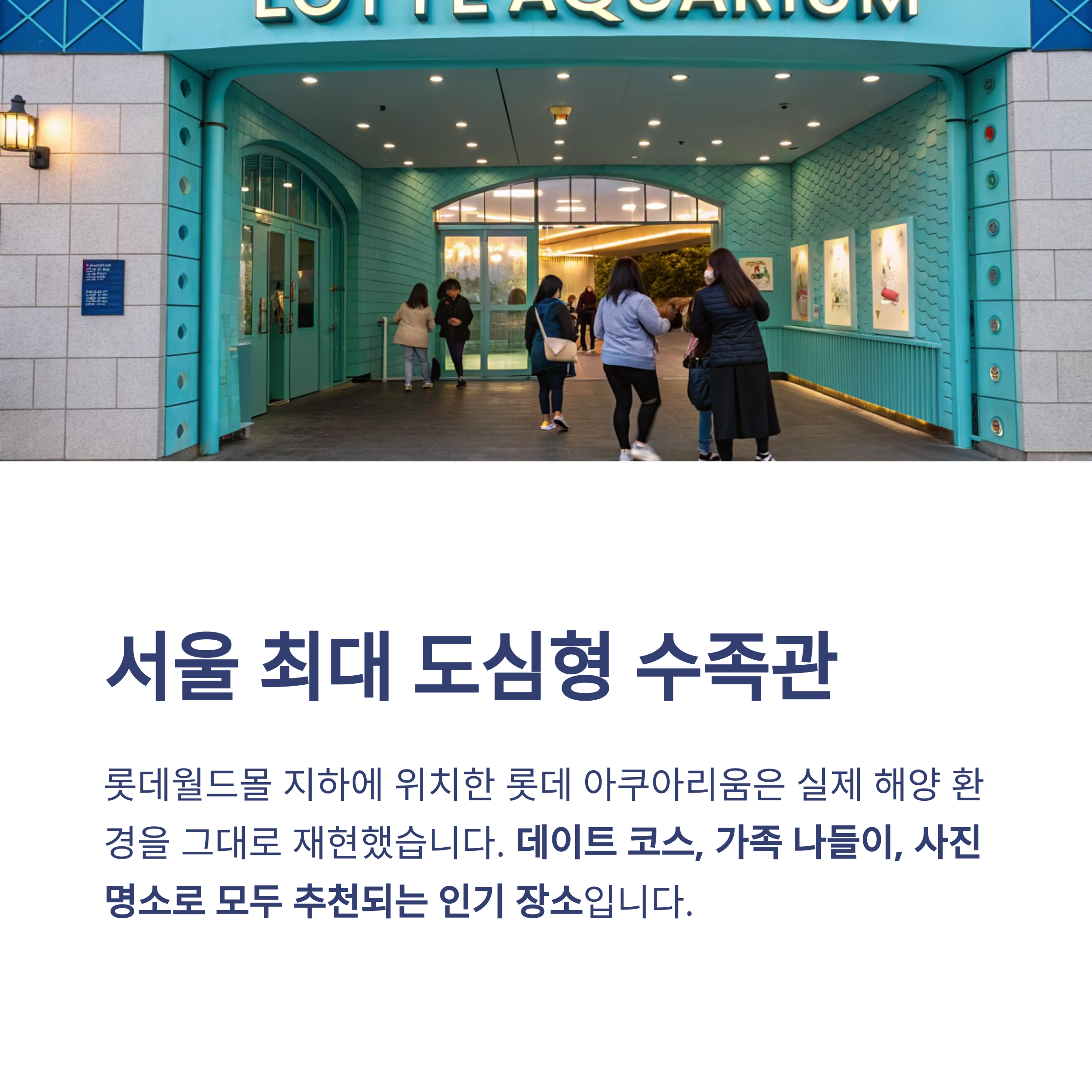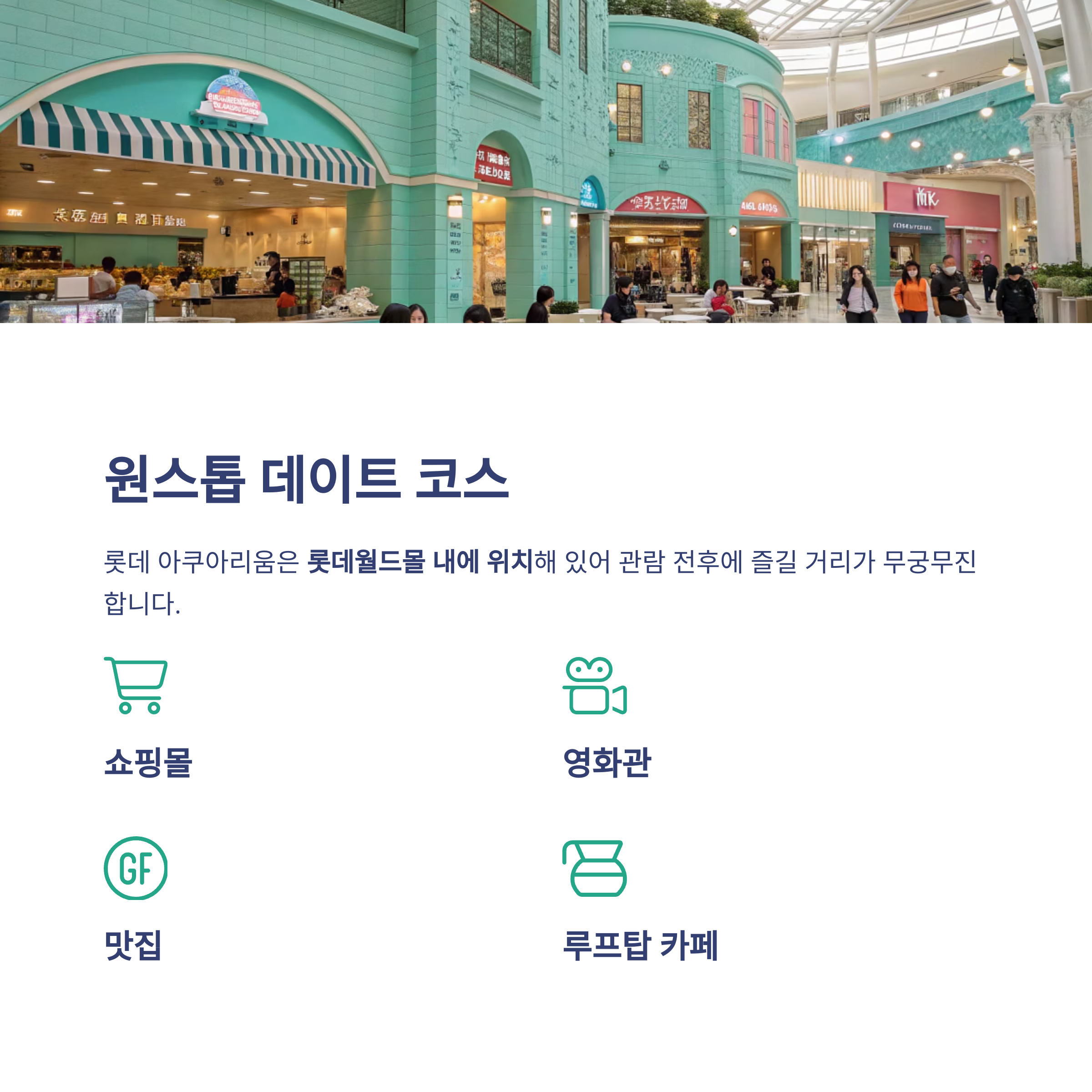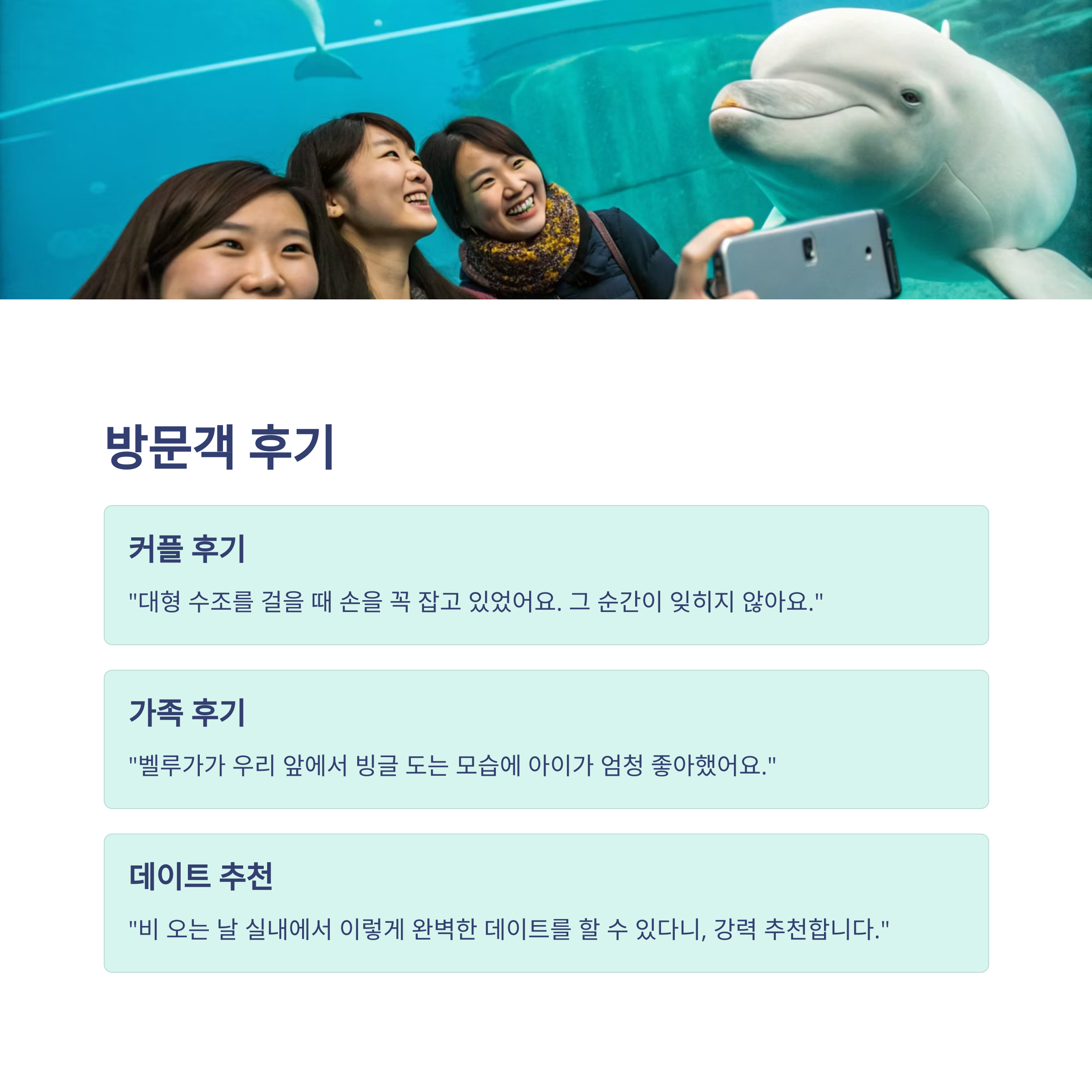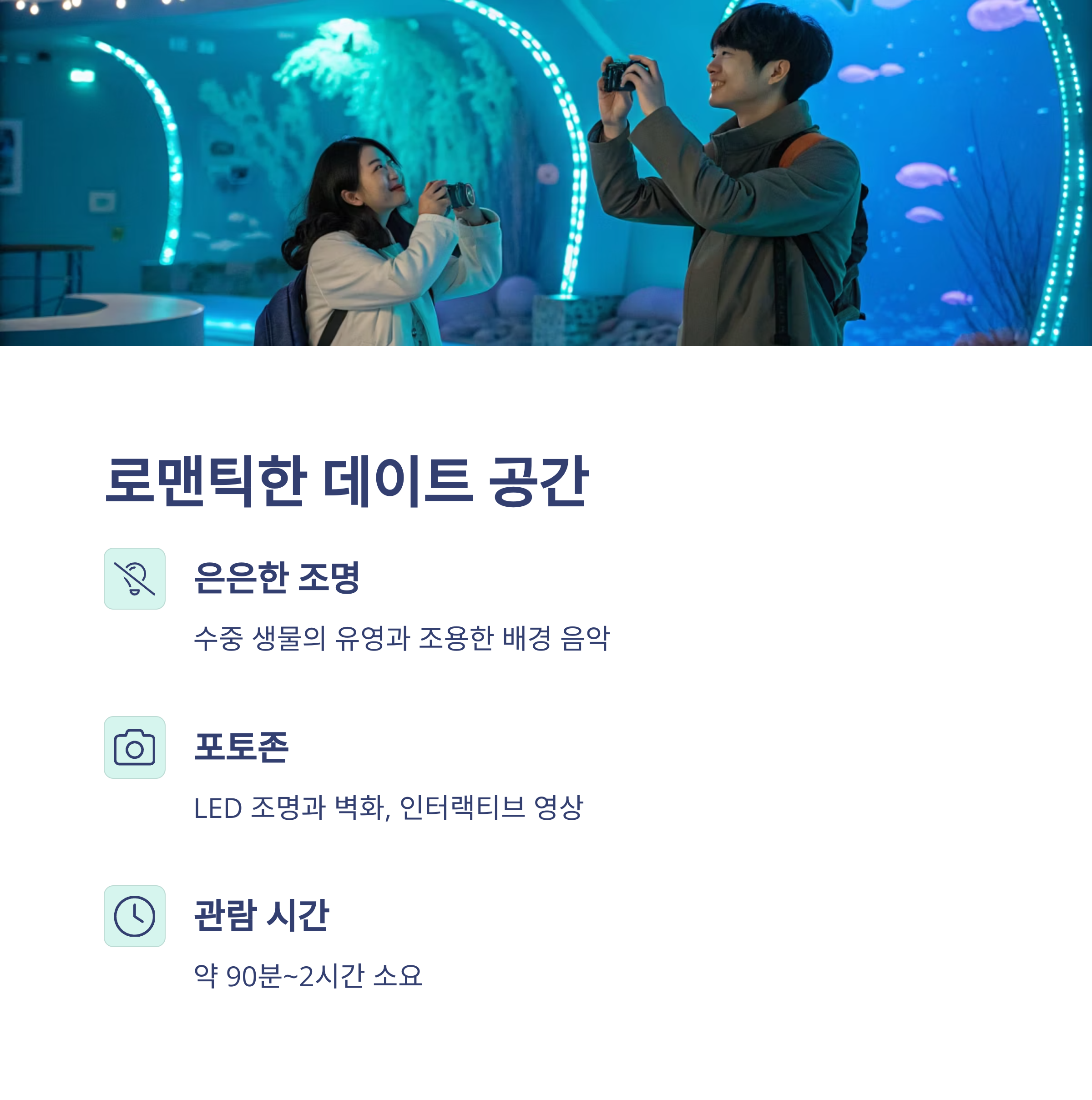 | 주요 특징 | 실내 수족관, 데이트 및 가족 코스 |