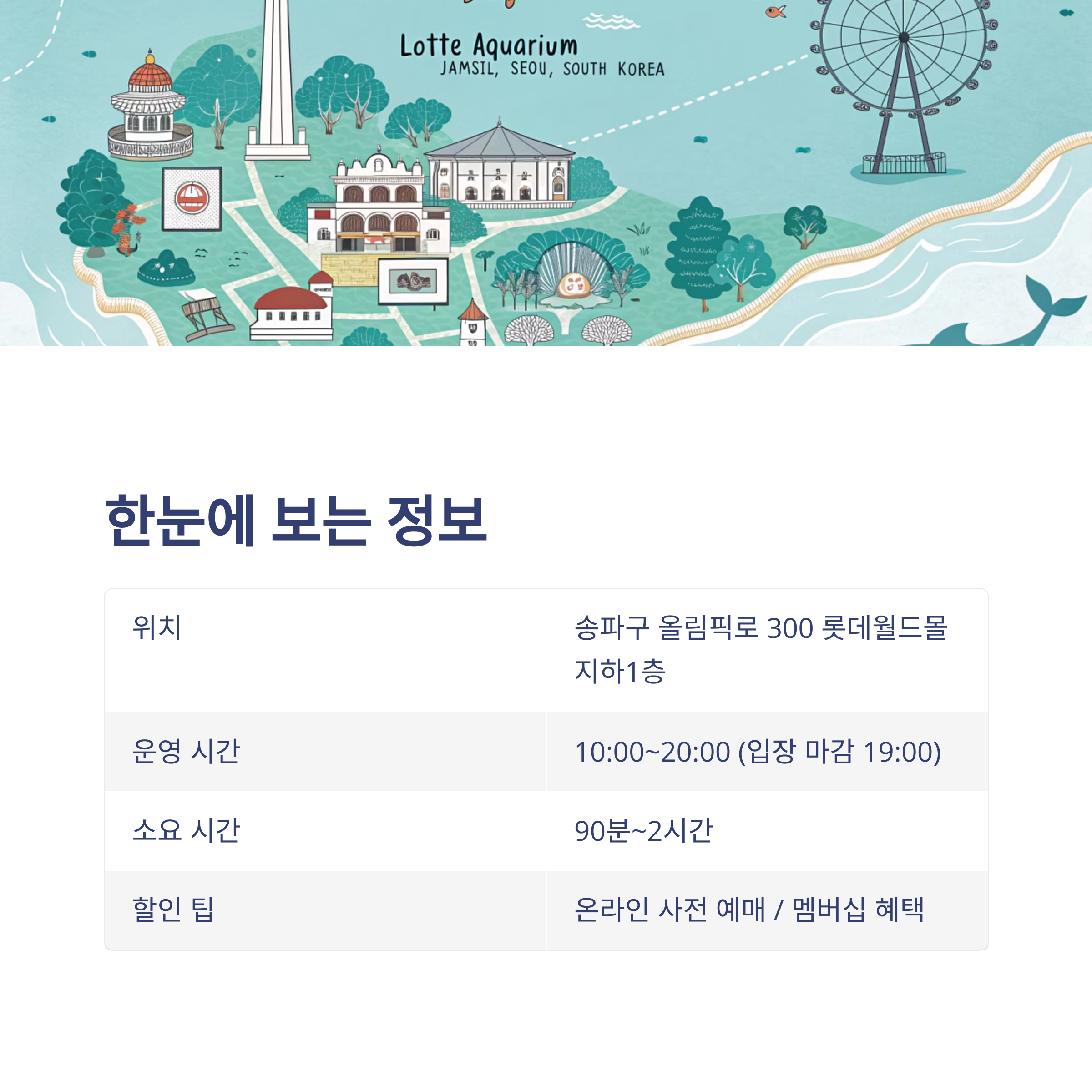 한눈에 보는 롯데 아쿠아리움 요약 정보