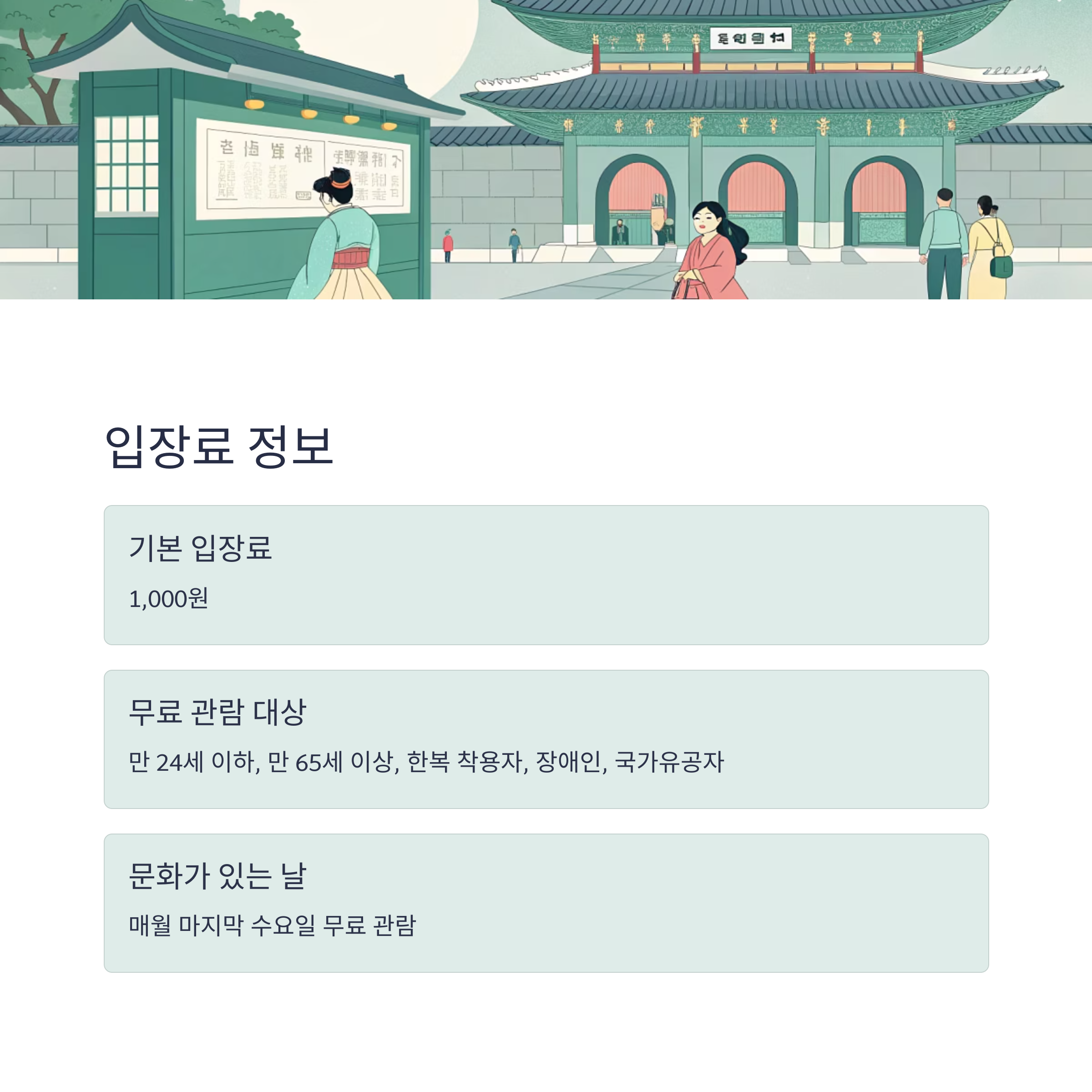 | 예약 방법 | 궁능유적본부 통합예약 홈페이지를 통한 온라인 예약 |