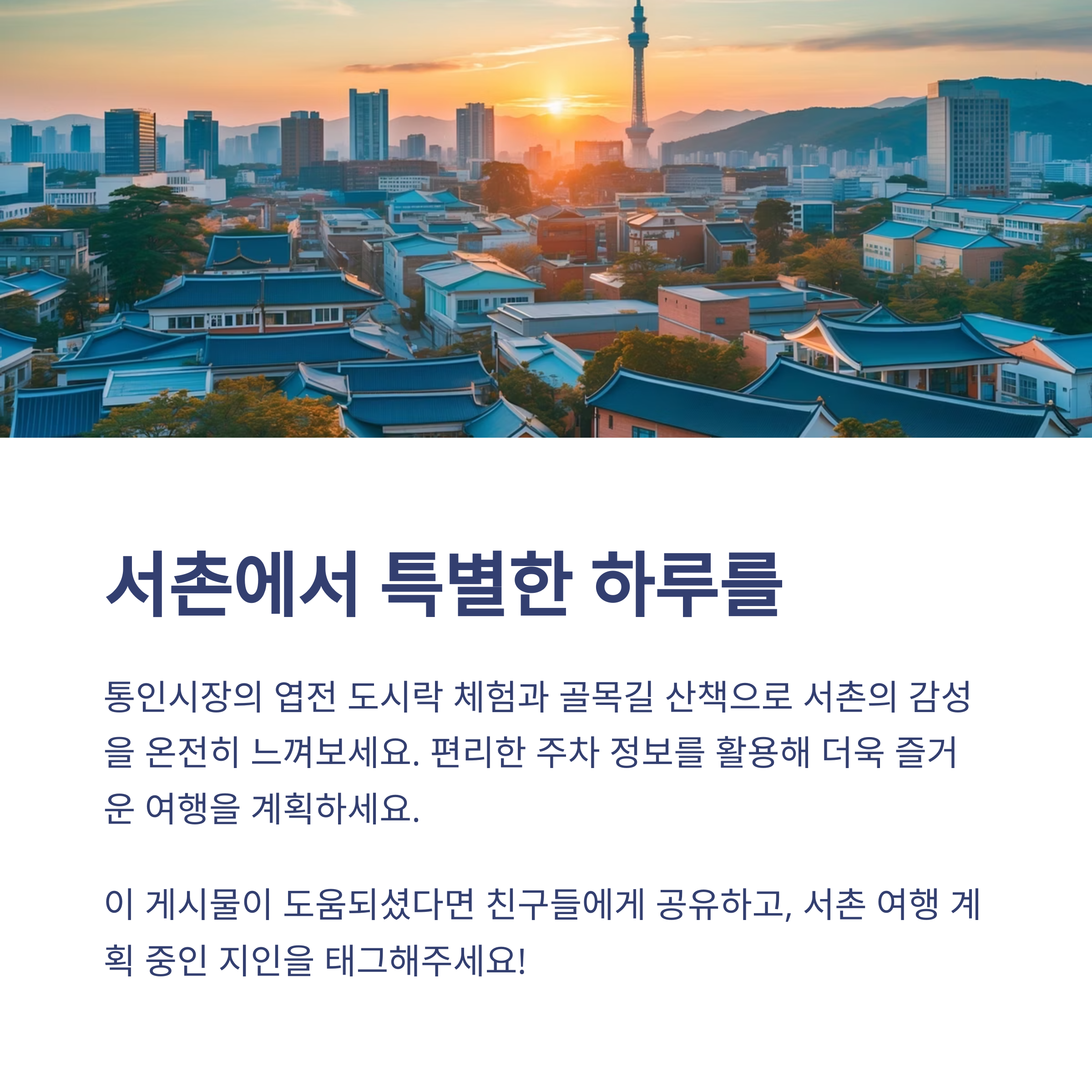 | 서촌 공영주차장 | 서촌 중심가 인근 | 30분당 1,000원, 평일 09:00~18:00 운영 |