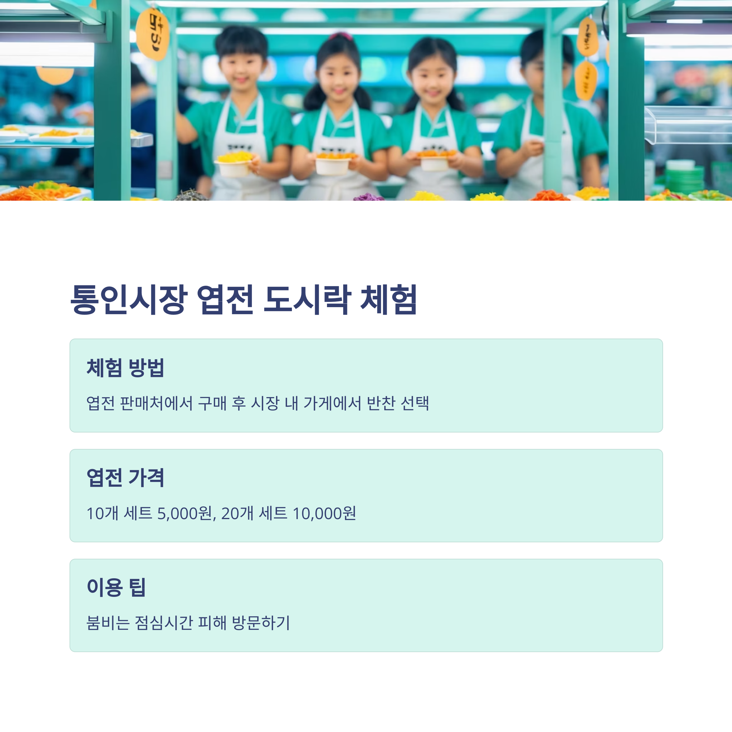 | 통인시장 | 엽전 도시락 체험 및 다양한 전통시장 먹거리 | 경복궁역 2번 출구 인근 |