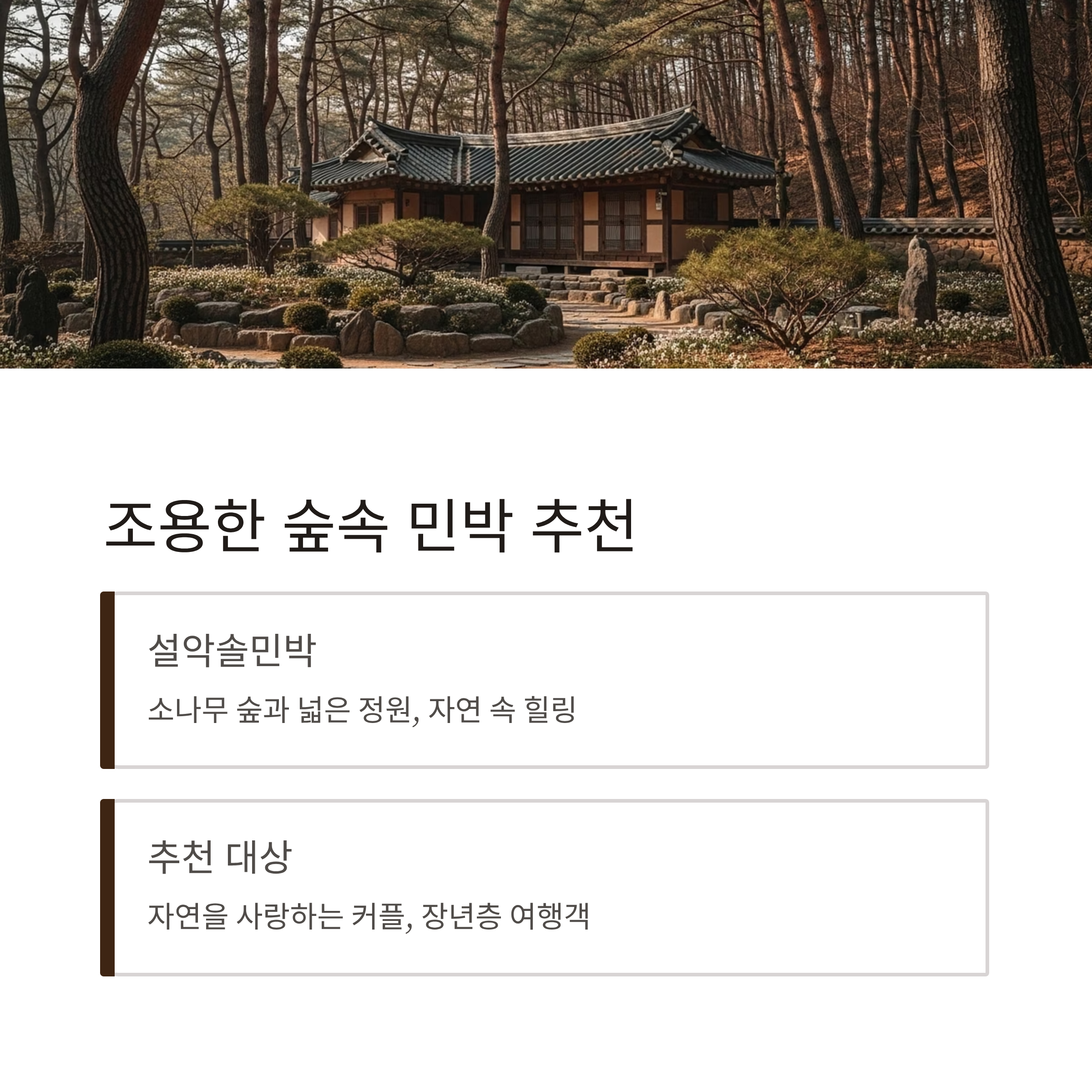 조용한 숲속 민박 느낌을 찾는다면