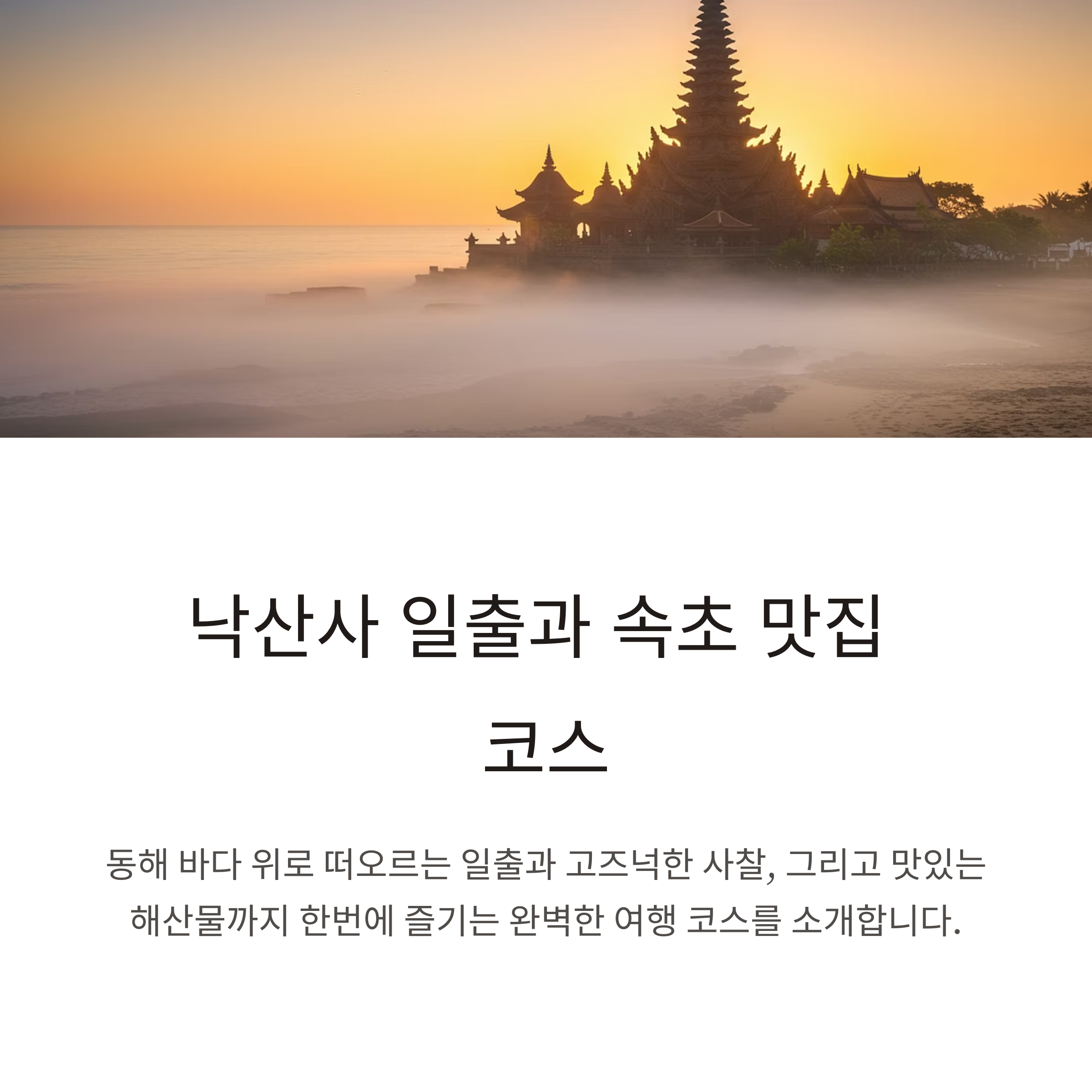 | 일정 추천 | 낙산사 일출 감상 후 속초 아침식사·시장 구경까지 연계 코스 구성 |