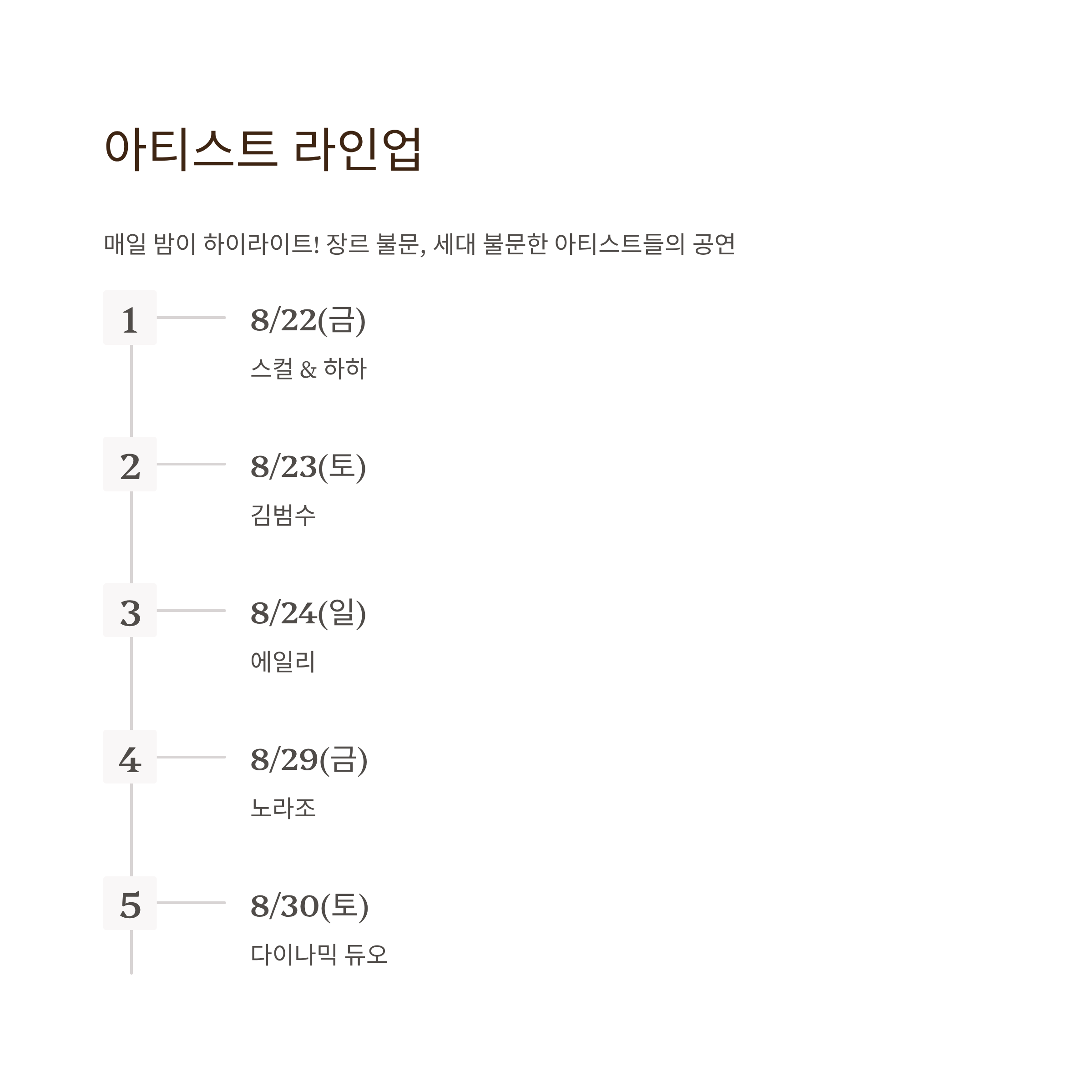 아티스트 라인업: 매일 밤이 하이라이트