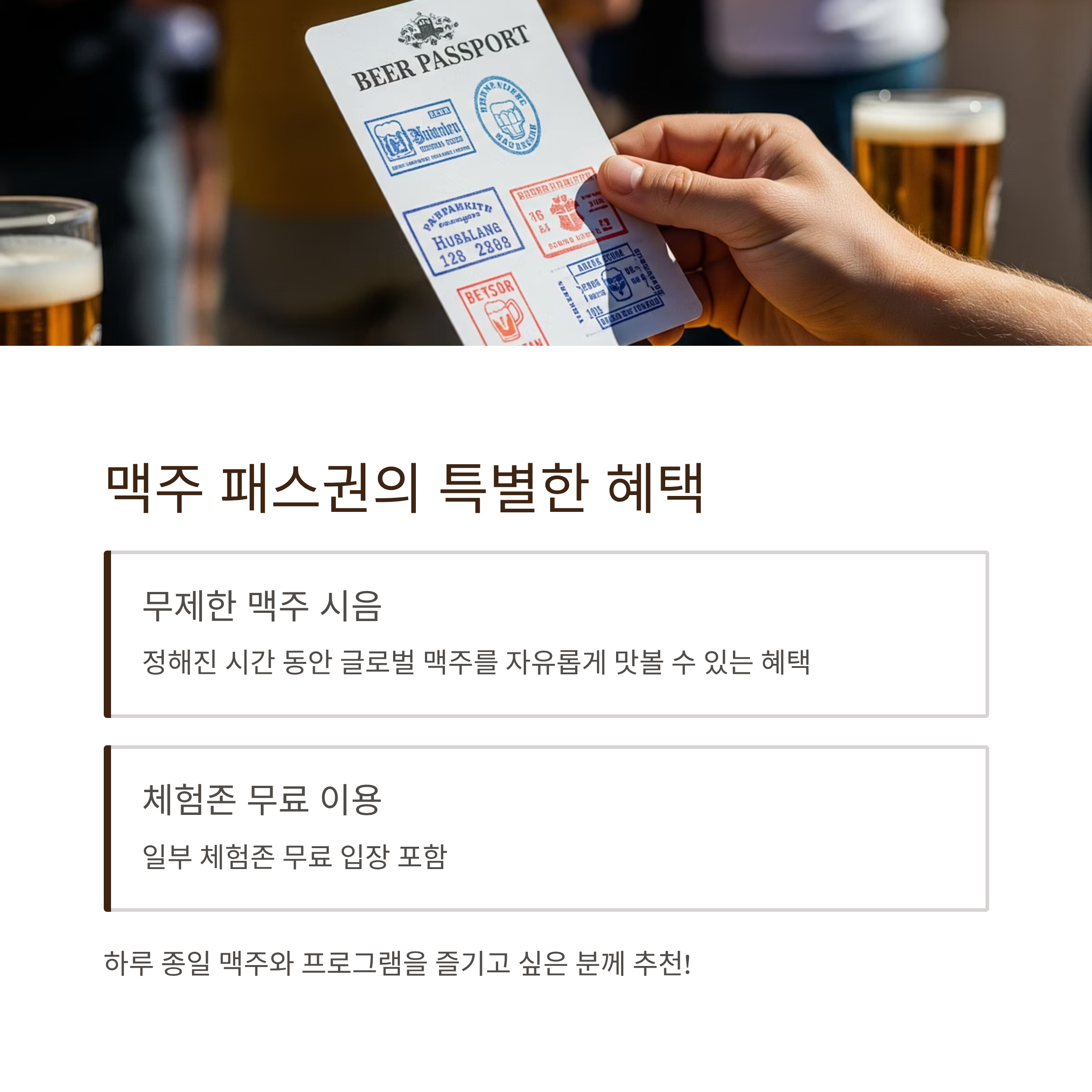 | 맥주 패스권 | 일부 체험 무료 + 무제한 맥주 제공 |