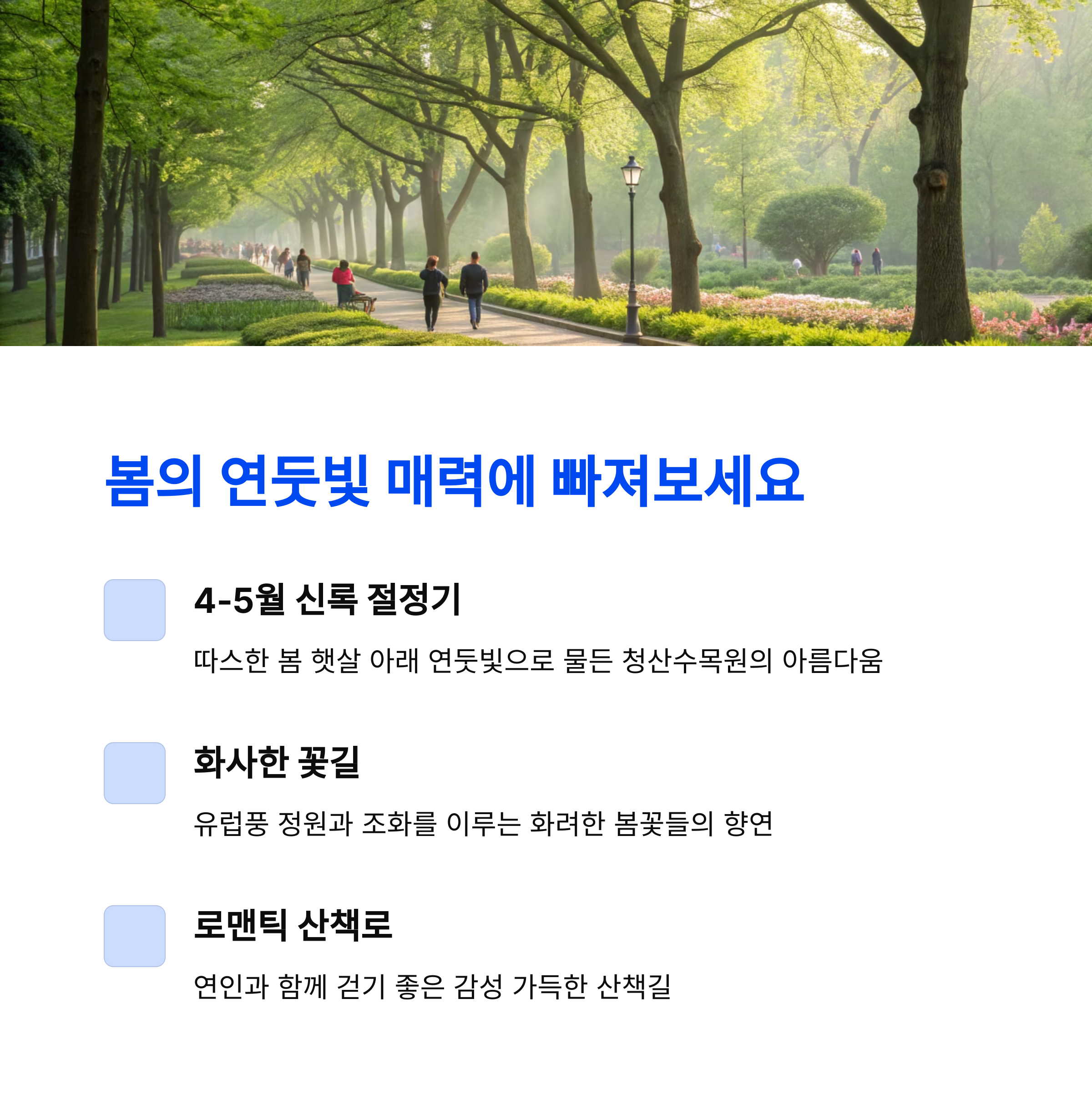 무료 입장과 다양한 포토존이 매력적인 청산수목원.
