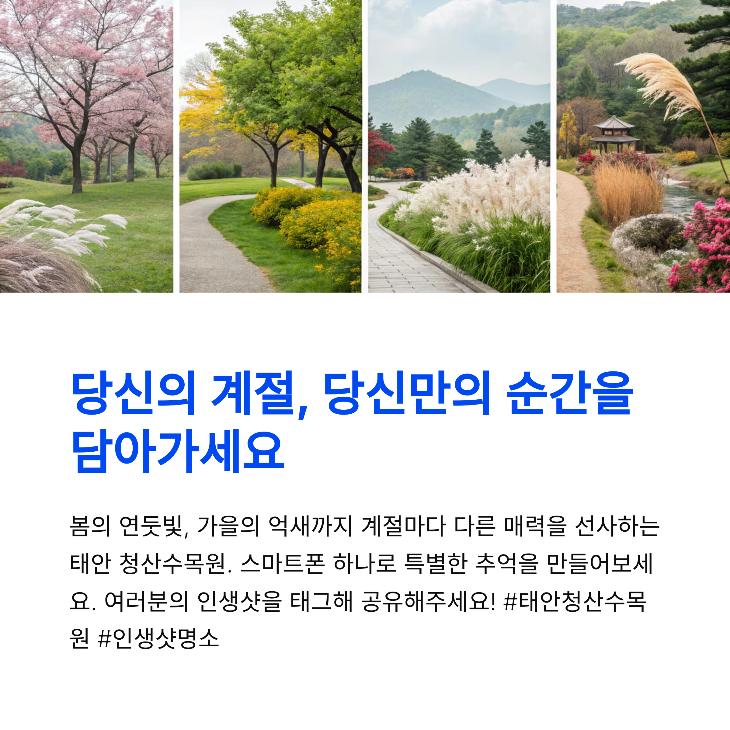 청산수목원과 팜파스 그라스 정원은 모든 방문객에게 자연과 촬영을 동시에 즐길 수 있는 장소로 추천됩니다.