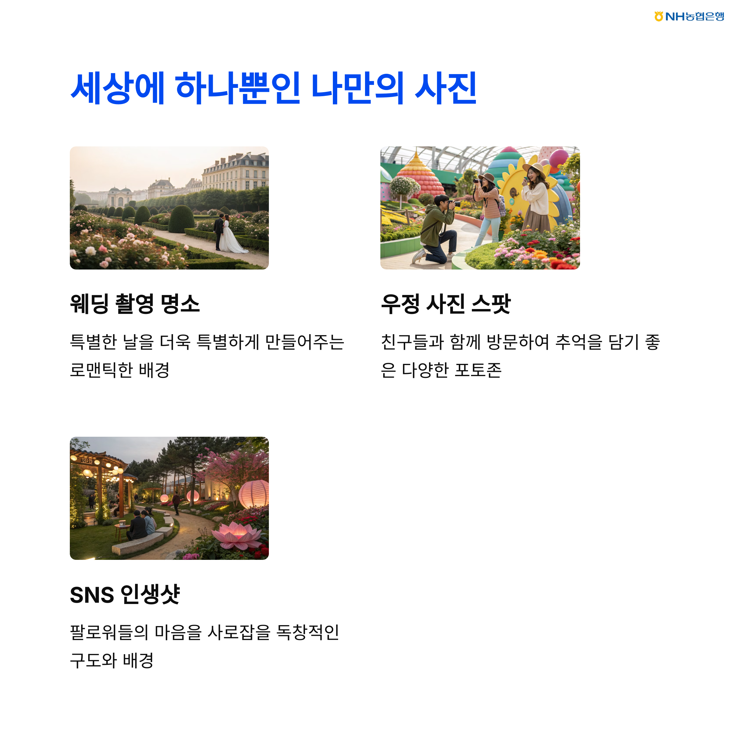 | 주요 특징 | 웨딩촬영 명소, 자연 포토존, 감성 풍경 |