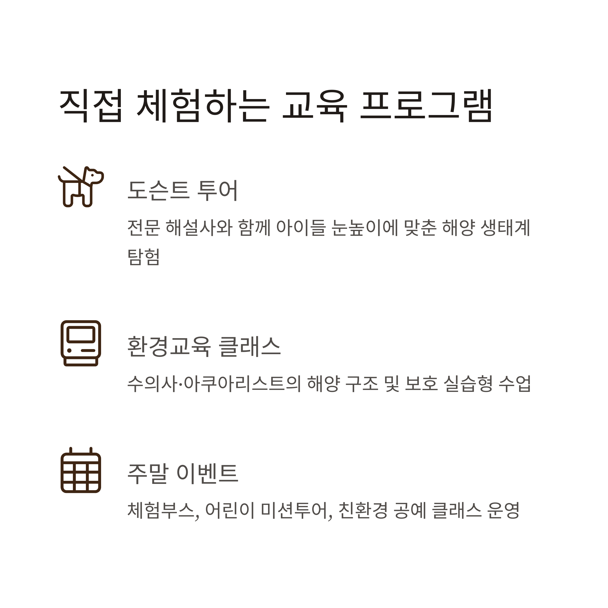 단순 관람이 아닌, 직접 체험할 수 있는 교육 콘텐츠가 많습니다.