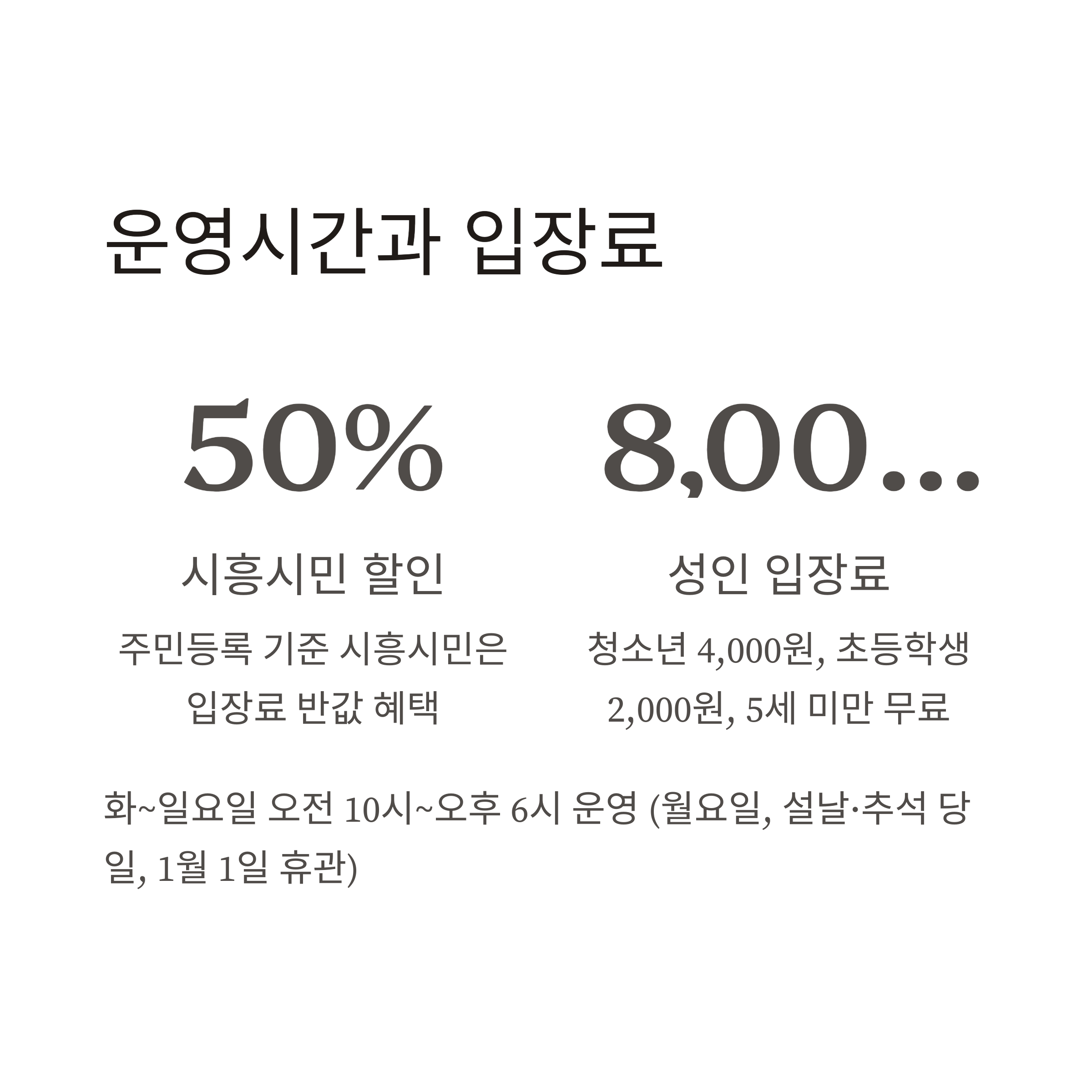 시흥시에 주민등록된 시민은 50% 할인이 적용됩니다.