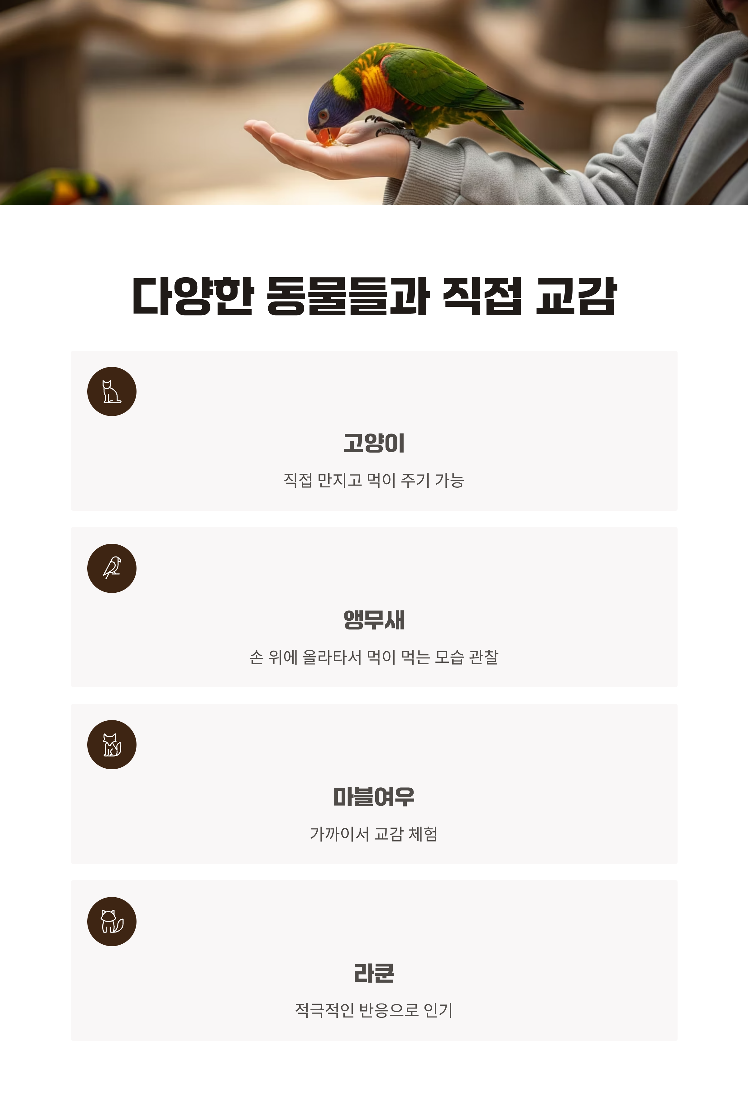 단순한 관람 공간이 아닌 ‘참여형 실내 동물원’이라는 점에서 큰 만족을 느꼈습니다.