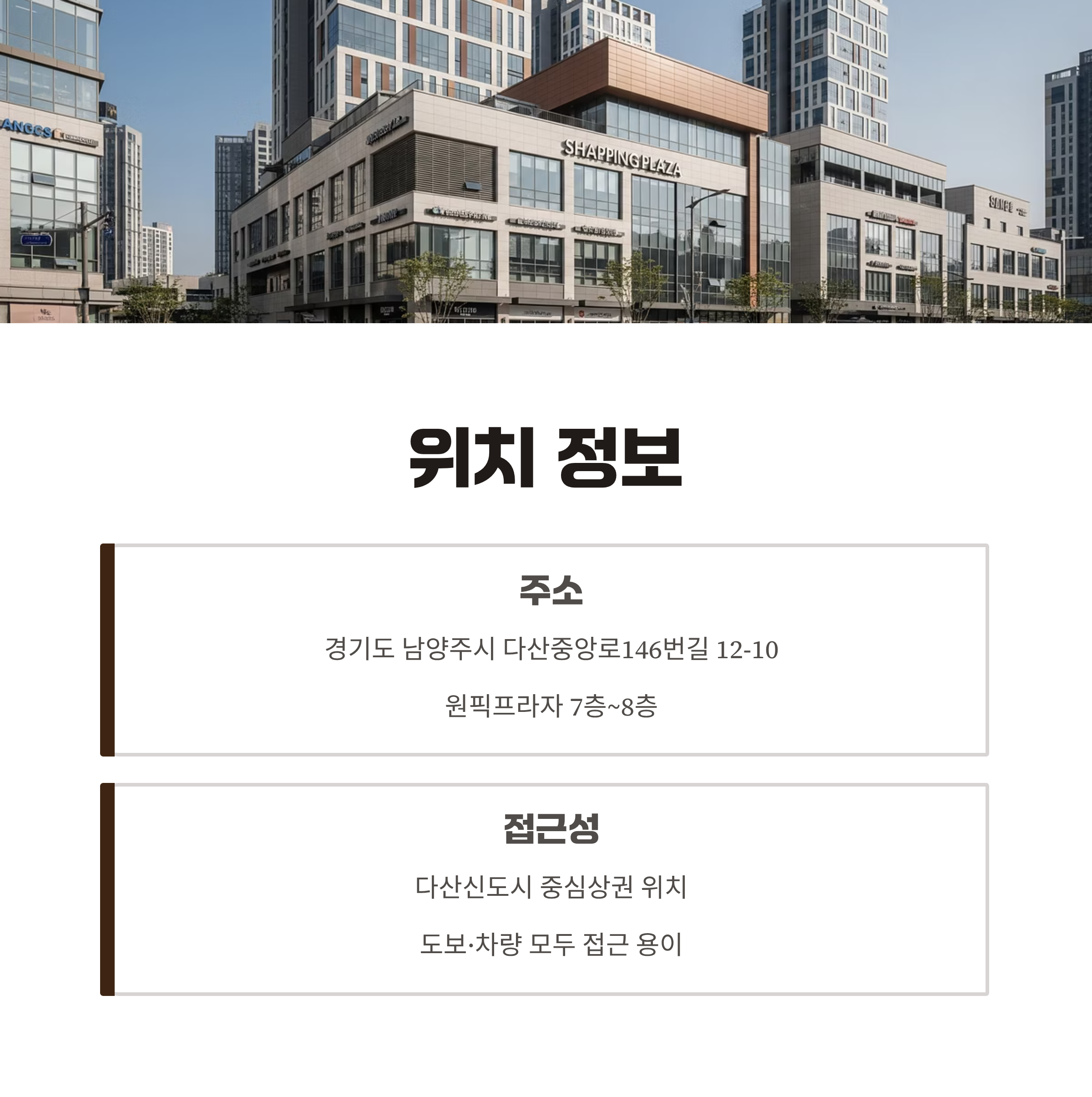 (다산신도시 중심상권에 위치, 도보·차량 모두 접근성 좋아요)