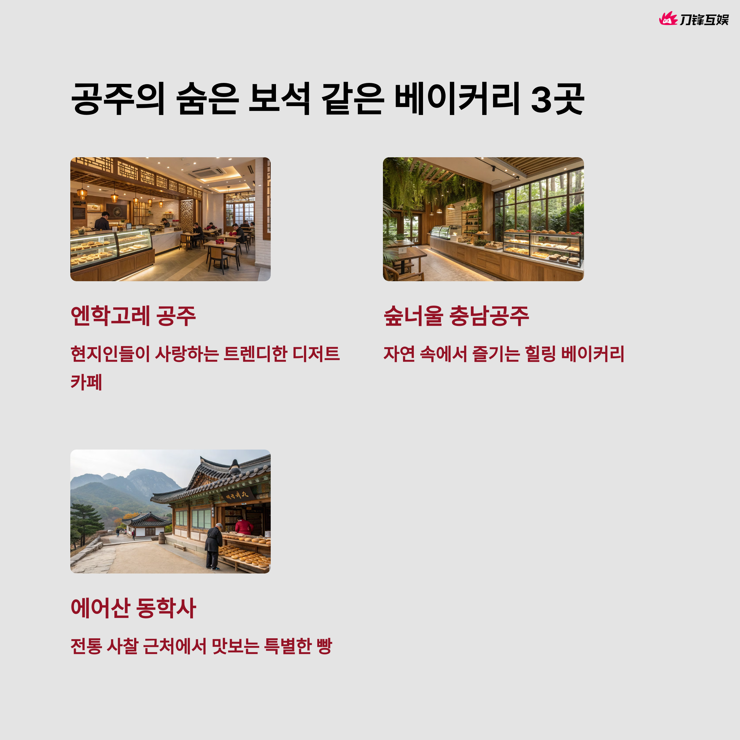 공주를 대표하는 베이커리들은 현지의 특산물을 활용해 맛과 품질을 겸비한 디저트를 제공합니다.